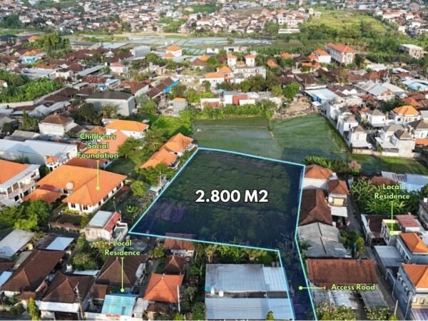 An excellent opportunity to secure leasehold land in a Yellow Zone with private access from the main road (Jl. Veteran). This land is ideal for residential development, private villas, or long-term investment in a well-connected and steadily developing area. The property benefits from a wide private access road, clear legal status, and all taxes fully paid for the entire lease period—offering peace of mind and long-term security.
