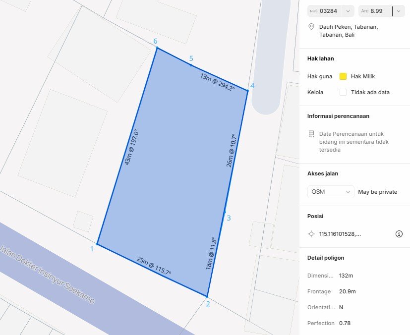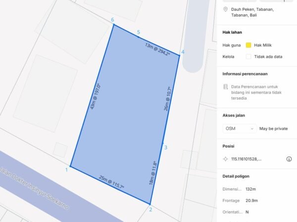 A rare opportunity to acquire freehold land directly on the main Dr. Ir. Soekarno Bypass in Tabanan, offering excellent visibility, wide road frontage, and strong accessibility. This property is ideally suited for residential development, commercial use, offices, clinics, or long-term investment in one of Tabanan’s most strategic urban corridors. Located in Dauh Peken, Tabanan, the land benefits from high daily traffic flow and close proximity to major public facilities, making it highly attractive for both development and land banking.
