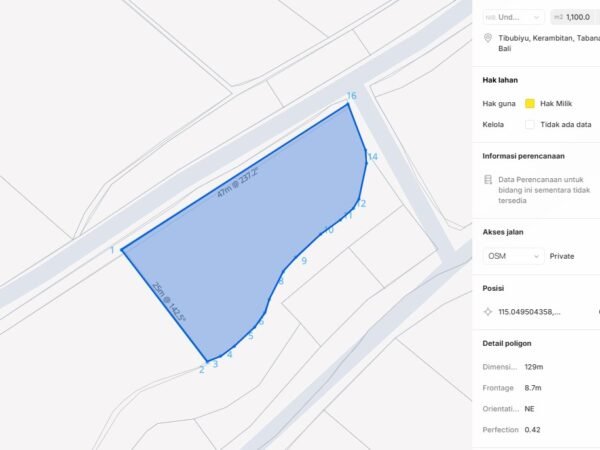 49827 – 1,100 sqm Rare Tourism-Zoned Land Near Pasut Beach – Tabanan, Bali