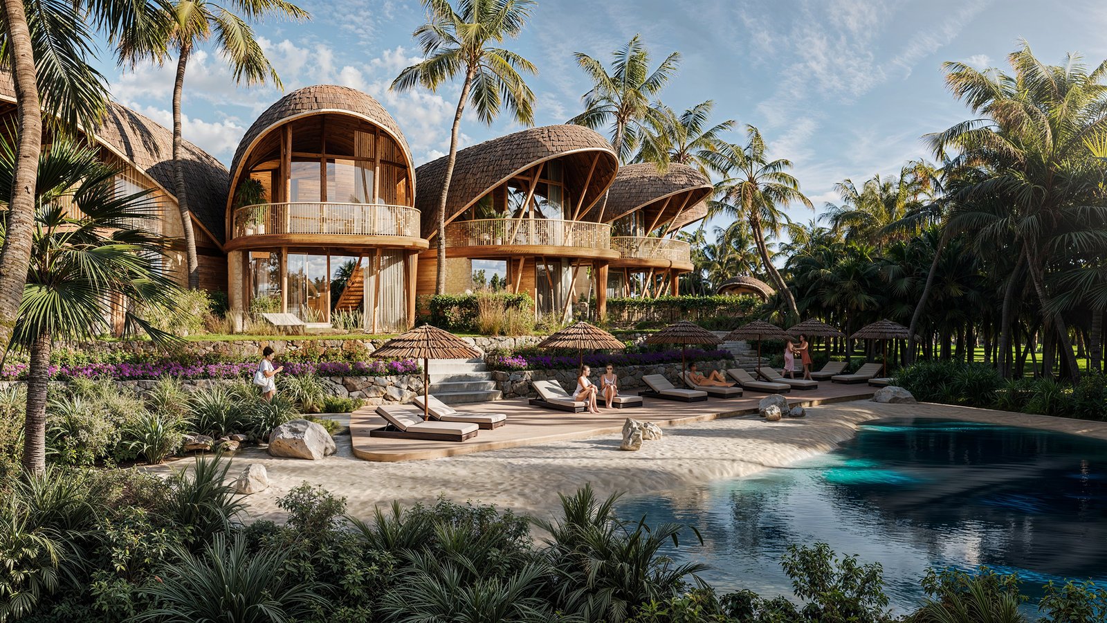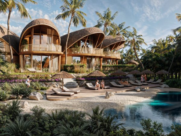 - Concept: Eco-luxury architecture inspired by Bali’s jungle landscape