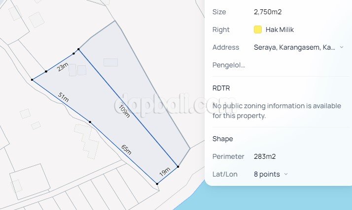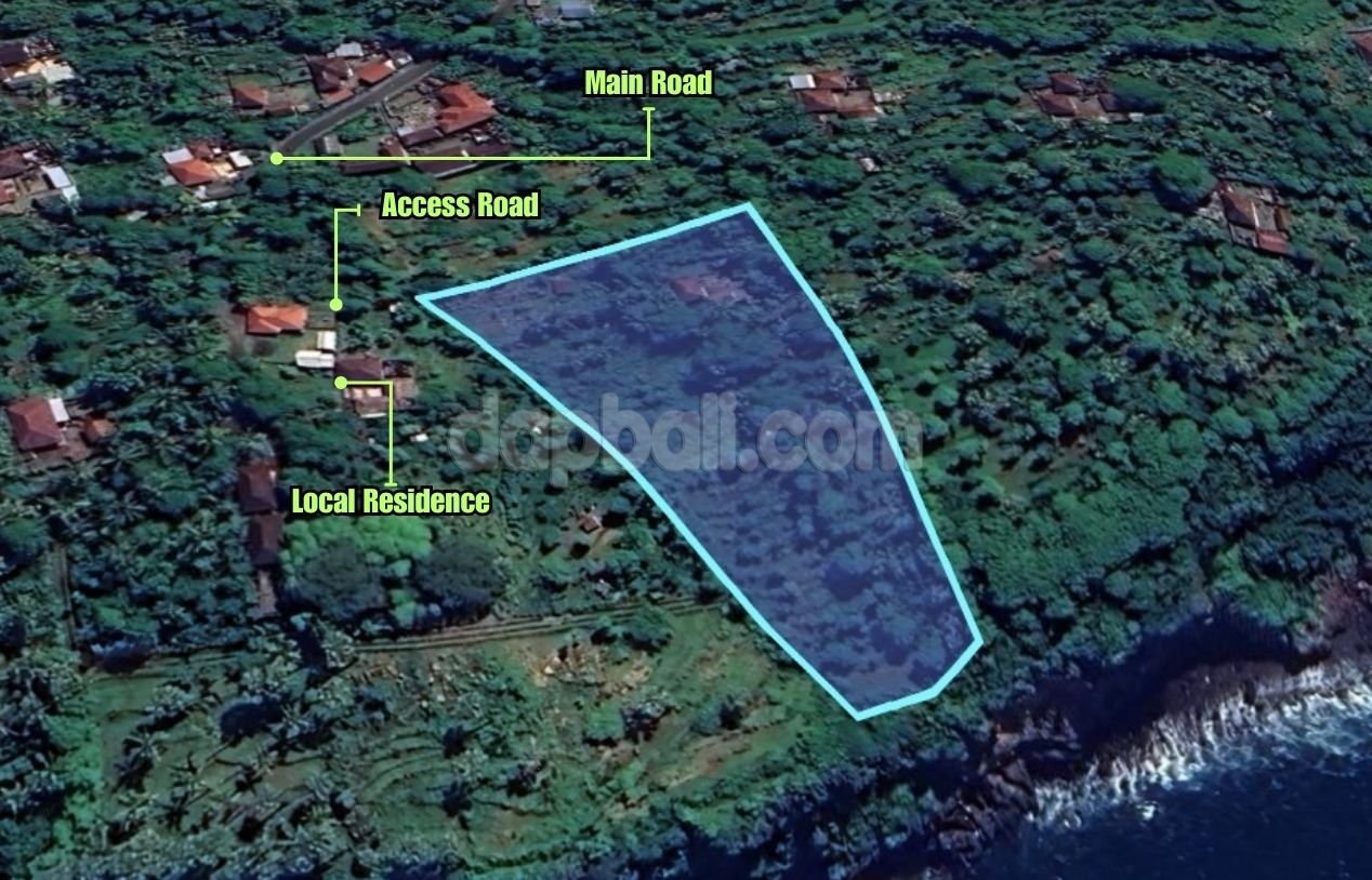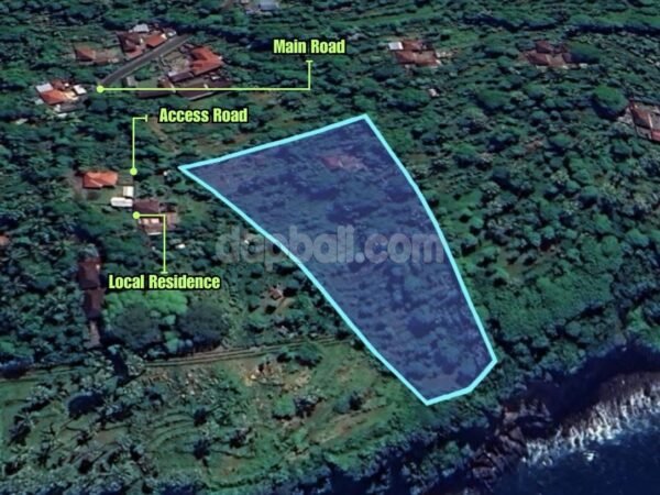 This exotic land is located far away from the massive tourists and hectic city, in the eastern part of Bali island is Karangasem. Discover this little piece of paradise where natural beauty is surrounding between mountain and the ocean. The cliff front land blessed in the east of Seraya village, Karangasem, Bali offers unparalleled views of the ocean, coastline, jungle and mountain. The serene and idyllic natural surroundings making it perfect to build a luxury private/commercial villa or even a hotel or resort and many other options of commercial business and will give you a very good return indeed. Whether you are looking to enjoy the rich diversity of the marine life in the magnificent underwater world, or just want to get an escape and relaxation this land area is the place to be. It is offering a freehold sale with total size of 5,150 sqm which consisting of two certificates and extra 200 sqm for access road. Stretched out on the cliff with length 39 meters and 70 meters road frontage. Each certificates features a 2,750 sqm and 2,400 sqm are selling in different prices.