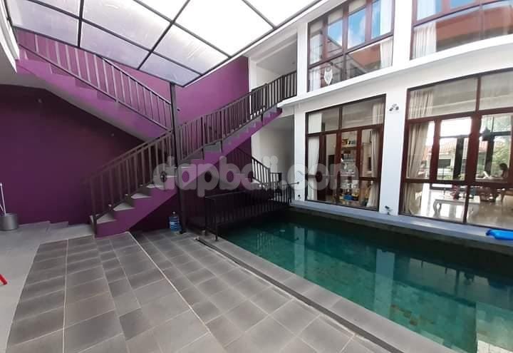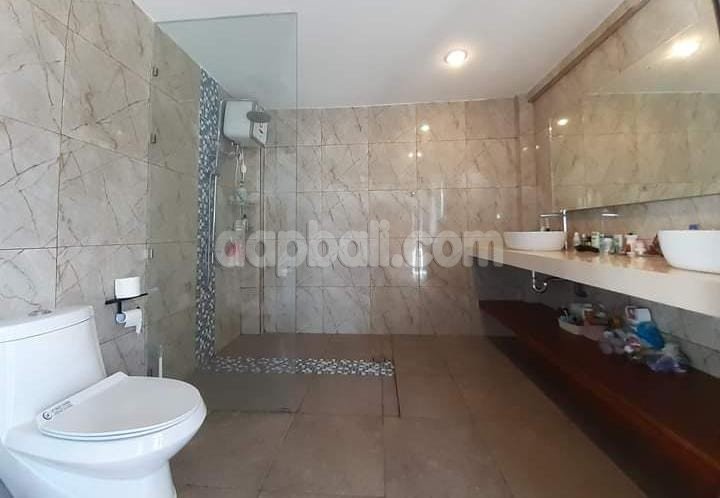 A 250 m2 three stories villa for sale in Puri Gading, Jimbaran. Located ini the middle of strategic area nearby Garuda Wisnu Kencana Park, Taman Rama School, and Coco Mart Puri Gading, this newly renovated villa present attractive ocean view. Placed in expatriate residential neighbourhood, it has 217 m2 global land area with open swimming pool area. The semi furnished north facing property accomodates 5 spacious ensuite bedrooms with floor to ceiling glass windows and door which let natural light from the balcony in.