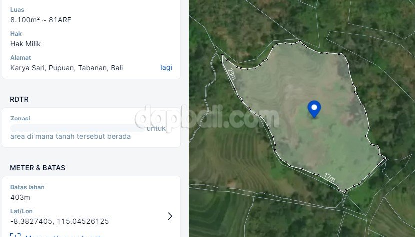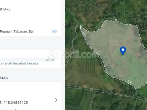 Experience Balinese culture with it’s natural beauty in the Southern part of the paradise island, Bali is Tabanan. A beautiful vacant land feature rice fields and estate which still overgrown with fruits tree and ready to harvest, surrounded by pristine river, terraced rice paddies and jungle. The total size of the land is 8,606m², consists of two freehold certificates (rice field and estate) and has contour some is sloping and some terraces. The area also has 5 meters access road which is easy to reach the location. And the most great thing is it presenting an Instagram able surrounding and tranquil ambience. This land will be perfect to build a yoga retreat sanctuary, wedding venue or resort where anyone can immerse into a world of unrivaled beauty and tranquility. Get the blissful serenity in an idyllic escape to revitalize mind, body and soul. Moreover, this land also will be a great options for long term investment as the price offering rightnow is very reasonable, therefore get it soon.