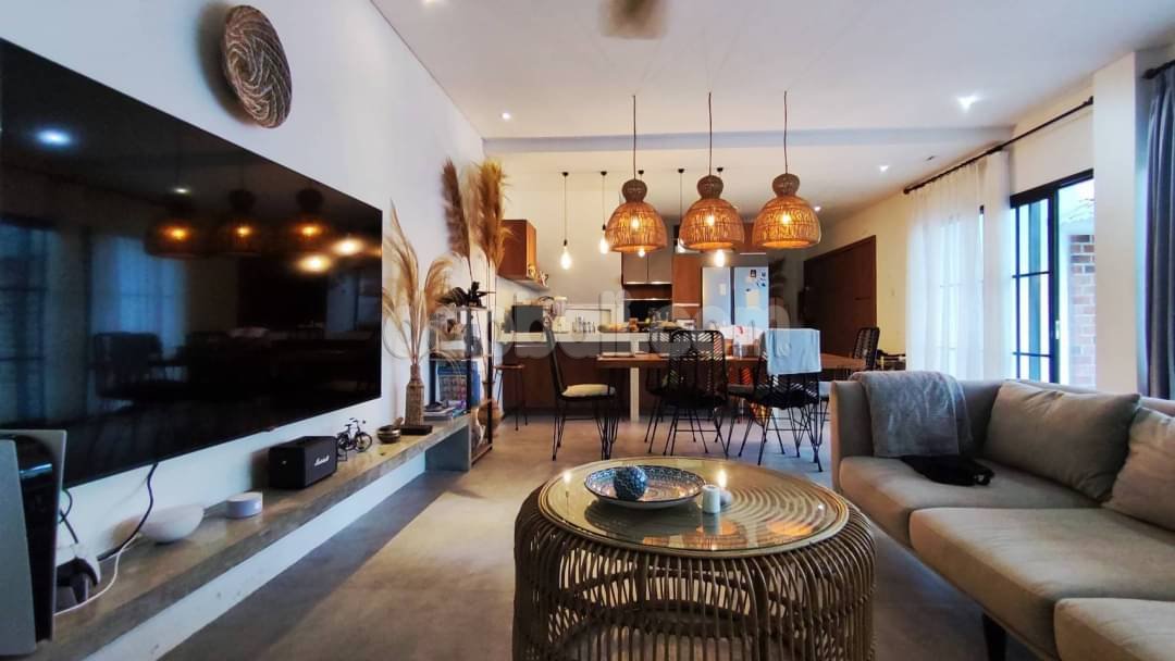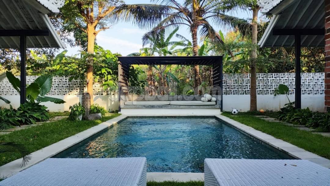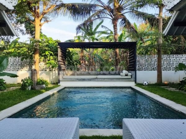 Located in a charming seaside village of Pererenan – Bali, a paradise adorned with lush rice fields and spectacular black sand beaches, blessed a hidden gem on the outskirts of Canggu – a stunning tropical villa. This property delves into the allure of an exquisite haven, highlighting its strategic location, architectural grandeur, and the seamless blend of luxury and nature. The strategic location of the villa offers each of the occupants a unique experience, providing tranquility and the idyllic authenticity of Bali while remaining within reach of the vibrant urban life. Nestled on the outskirts of Canggu, the villa enchants with stunning natural beauty, offering picturesque views of rice fields, river and lush tropical vegetations. Comes with an elegant architectural concept style, the villa seamlessly merges with its surroundings which creating a tranquil and luxurious ambiance from the moment you are entering. The architecture employs high-quality materials that creating in warm, unpretentious, and modern spaces. Large glass doors and open windows serve as portals to the beauty outdoors, enhancing the connection between indoor and outdoor spaces. The elegant living room serves as the inner point of the villa, adorned with elegant and eco-friendly furniture and local art touches that add charm, completed with ceiling fan and a big flat screen tv. The three bedrooms, each featuring king-sized beds and ensuite luxurious bathroom, are meticulously designed, furnished and decorated to ensure maximum comfort. Every corner of the villa is thoughtfully curated, creating a peaceful and stylish atmosphere. One of the most enticing features of this villa is its private pool which equipped with sunbeds and a pergola complete with a bed which is perfect for relaxing or even having a massage while enjoying the natural tropical breeze, offering an exquisite view of the meticulous tropical garden. This amazing spot allows the occupants to unwind while get tanned under the Bali’s sun or having a good time with family/friends. This villa is not only a visual delight but also equipped with modern amenities to enhance the high standard of living stay. A fully equipped kitchen and cooking facilities cater you who wish to indulge in culinary pursuits and next to it, the elegant dining area provides a lovely setting for shared moments with 6 seats dining table with bird nest style lighting. Overall, this villa presents elegant comfortable ambiance, tranquil natural beauty, and easy access to Canggu, making it a perfect Bali home away from home, a destination for those in pursuit of a special and unforgettable Bali experience. Whether you seek tranquility, luxury, or a seamless blend of both, this villa promises a little piece of haven experience!