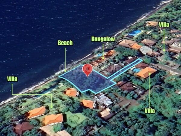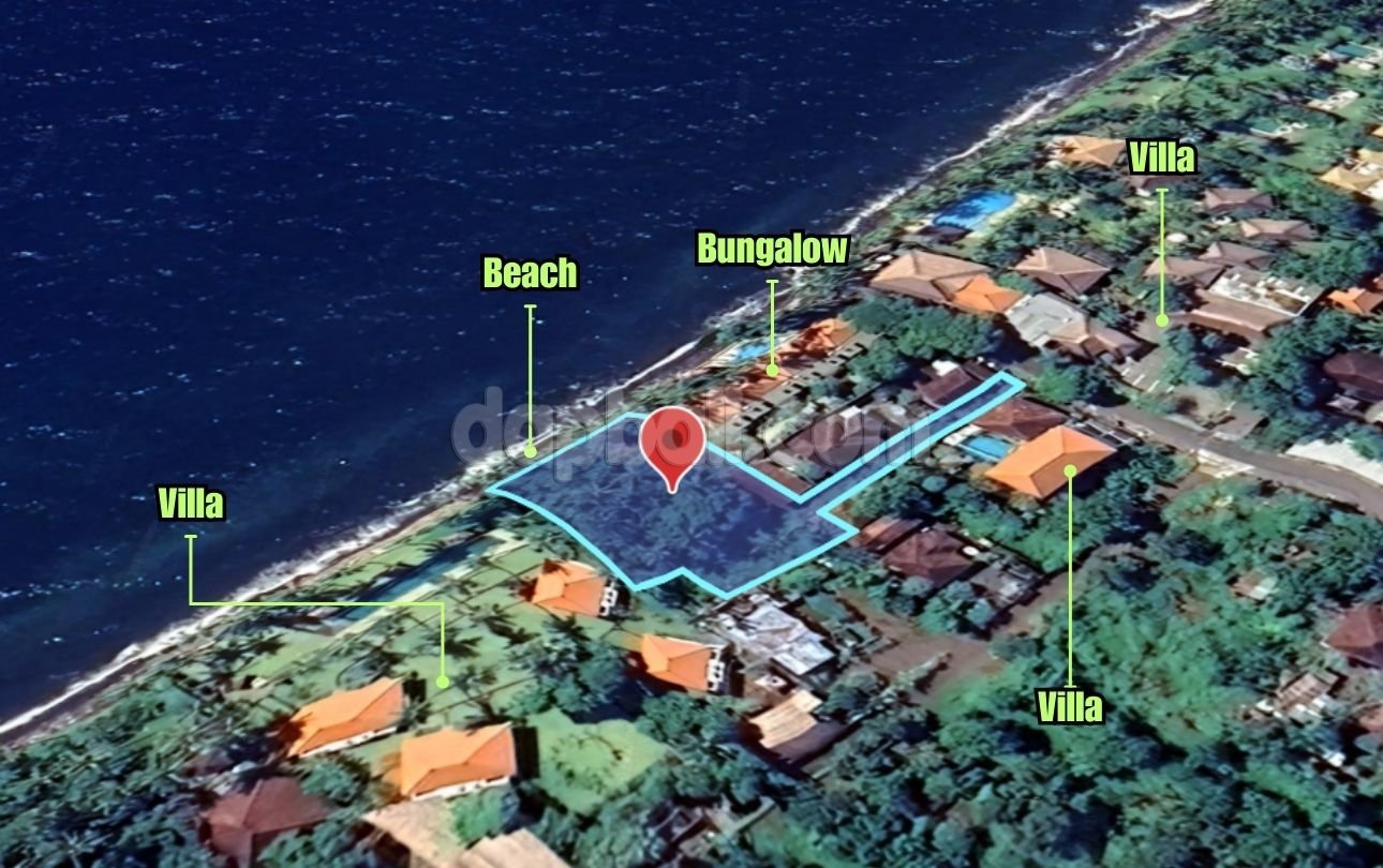 Perfectly located in front of Sparkling black sand Tulamben beach, surrounded by resorts, villas, restaurants and others tourism sites, in the North-East coast. This land is close to Dive Concept center of Kubu village, it is known as Bali’s best kept secrets which has great dives sites to explore and stealing the hearts of many divers. Set back from the main road, it assures peace and tranquility to all the divers, nature wanders and peaceful seekers staying in this stunning escape. Situated in tourism zoning with total size of 1,500 sqm that consists of two certificates. This land has 27.5m beach frontage, flat contour, wide access road and it is ready to build and suitable for a private/commercial villa, hotel or restaurant. Tranquil environment, Breathtaking views, and Natural surroundings, make this land area be a place for anyone to relax, escape from the city buzz, and indulge in the exotic nature and discover the best underwater world here at Kubu, Tulamben, Karangasem.