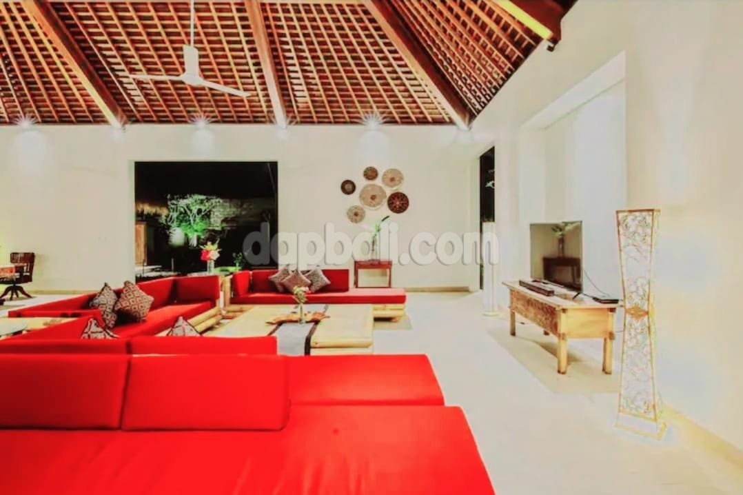• A huge semi open-closed living room nestled as the center piece of the property, surrounded by the bedrooms, swimming pool, garden and lush greenery neighborhood. It is equipped with large sofa, ceiling fan, flat tv, that is overlooking onto the lagoon swimming pool.