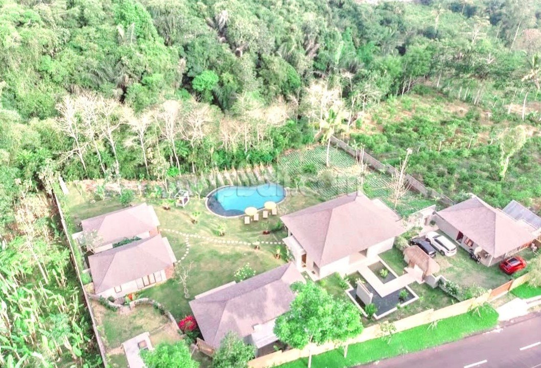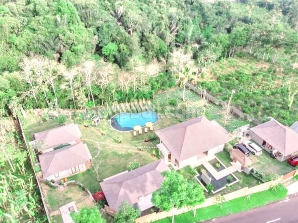 Beautiful villa for sale, located in an enchanting area of Ubud, Bali is Payangan that is perfect as a hidden retreat venue is far away enough from the massive tourists area of central Ubud, but still offering the peaceful settings of the surroundings area like jungle, rice fields, etc. This villa perched on land 3,000m² with total building size only about 600 – 700m² which allows you to build and create more rooms as option or creating for a beautiful garden/ more space for gardening. Due its perfect location being easy to access and quite close to everything that makes it an ideal property for business as commercial villas or a tranquil home away from home for own use. The villa comes with Balinese contemporary design featuring some separate buildings with details: