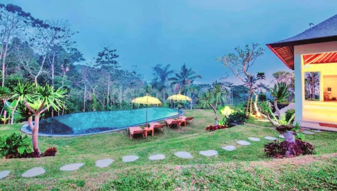 • A big open space infinity swimming pool that overlooks onto the scenic view of the garden, jungle, farm and clear blue skies. Surrounded by some sunlongers with umbrellas. It is a great place to relax and unwind under the skies and breeze while sunbathing.