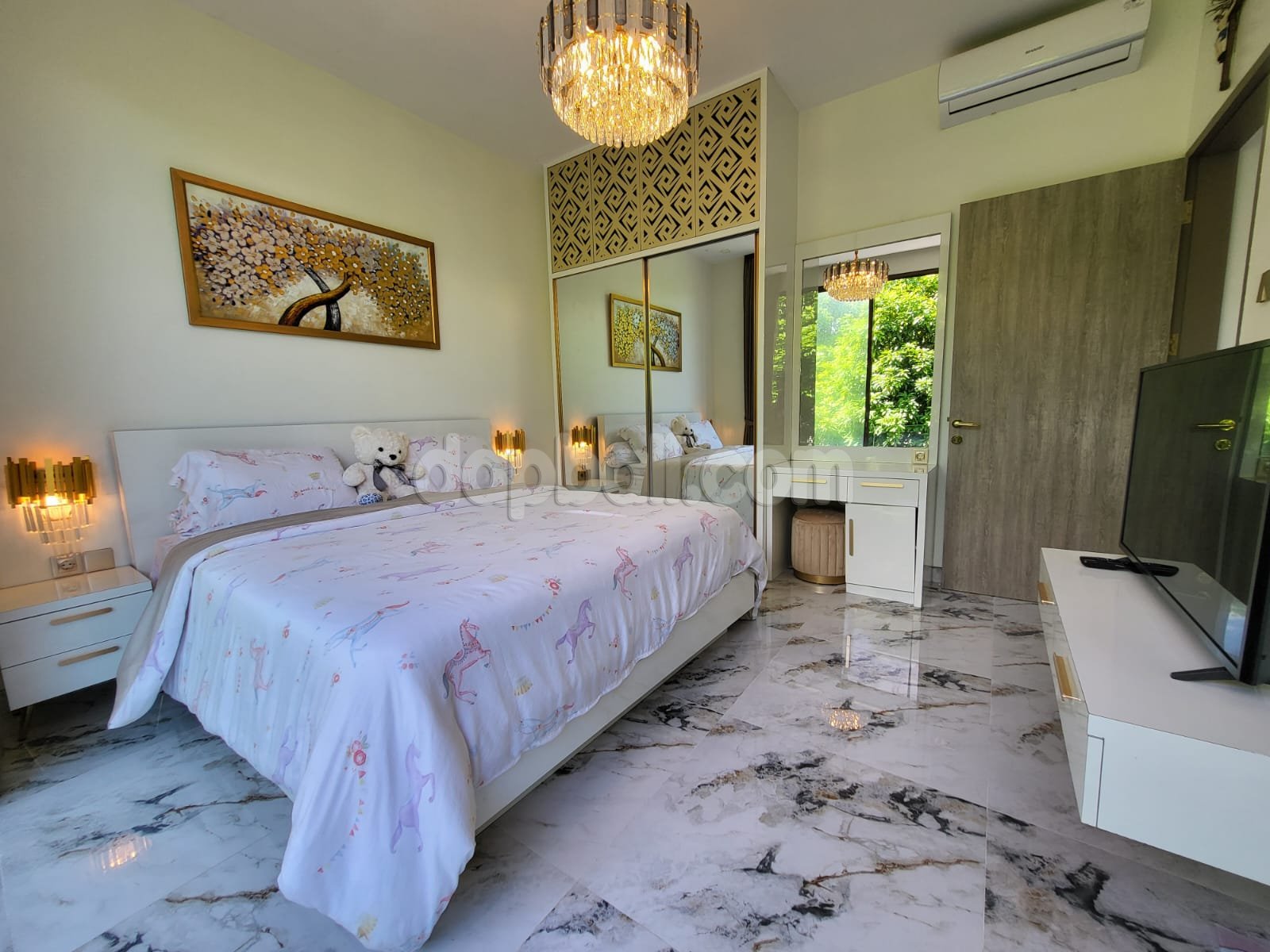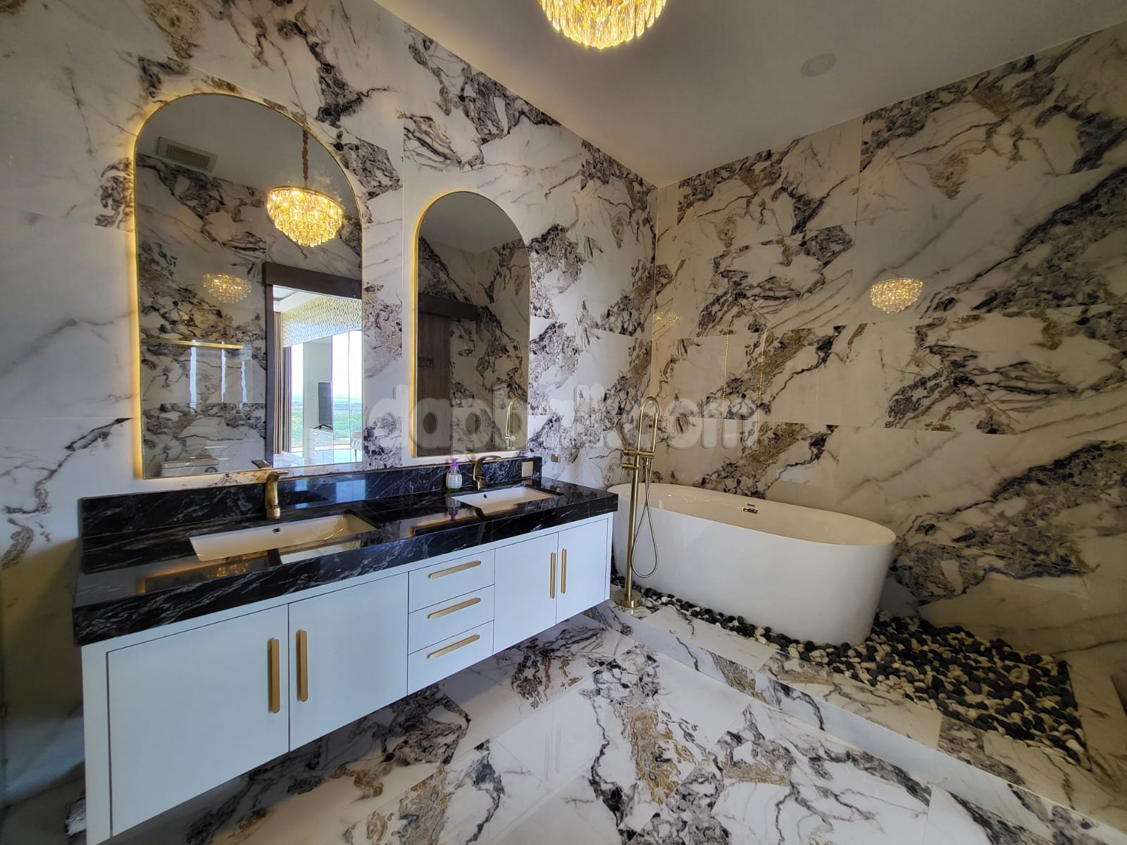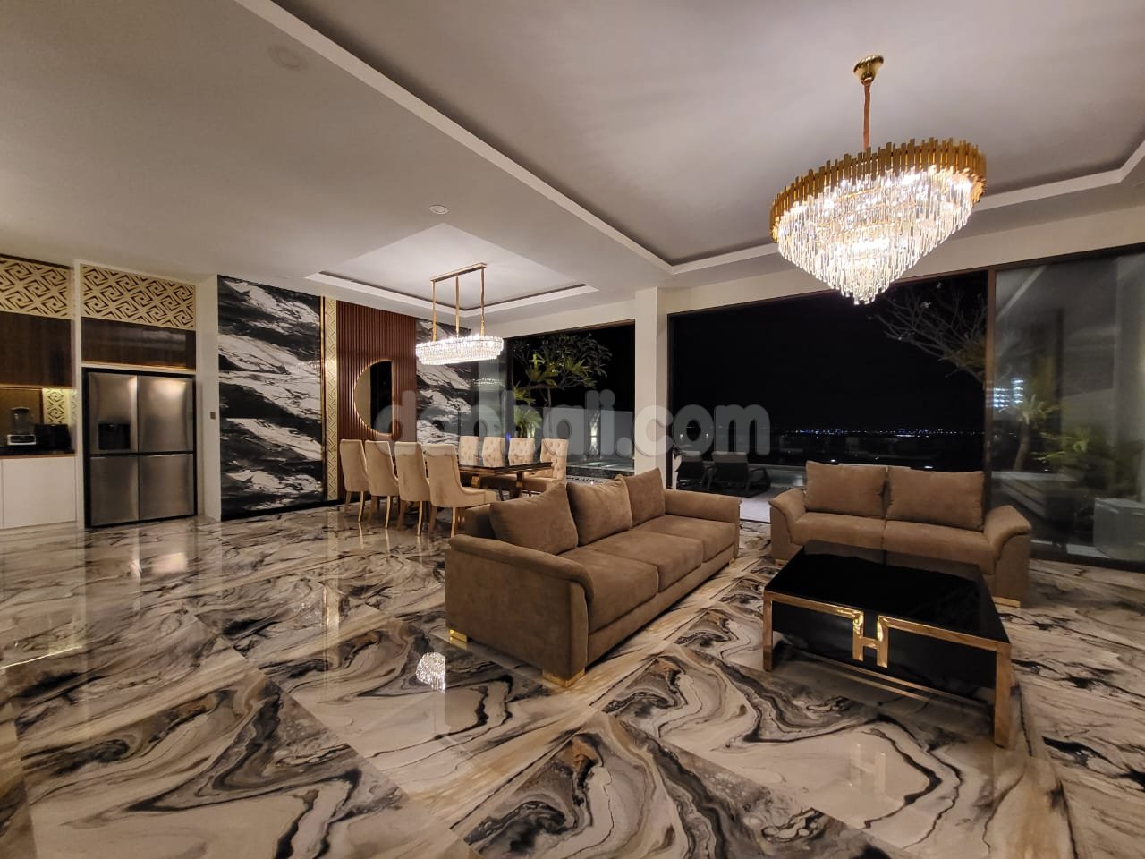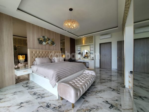 ** The Bedrooms are spacious equipped with luxury furnitures such as bed, decorations, makeup table, sofa, and the bathroom itself is brilliant with royal feel ambiance from the floor and wall, equipped with big bathtub, rain shower, sitting toilet, and washtafel with makeup set. All the amenities are using premium quality.
