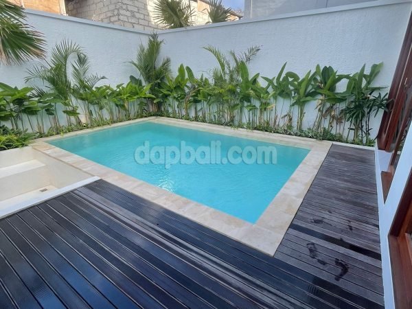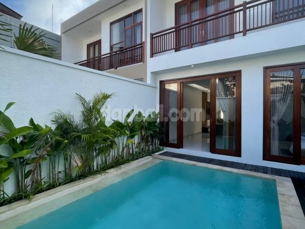 Set on land of 173 sqm with building size is 224sqm as a two-storey building. Easy access to the location by 4 meters paving access road. Strategically situated on villas environment and perfectly facing to the west, which is possible to enjoy the sunset view from the villa. The villa for sale with fully furnished, built with high-quality of materials such as frames, doors and windows are using Bengkirai wood, marble flooring and furnishings featuring: