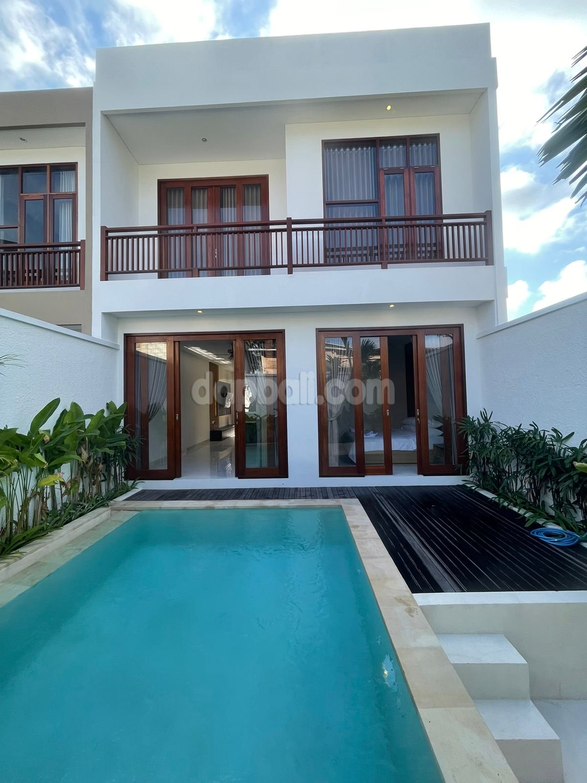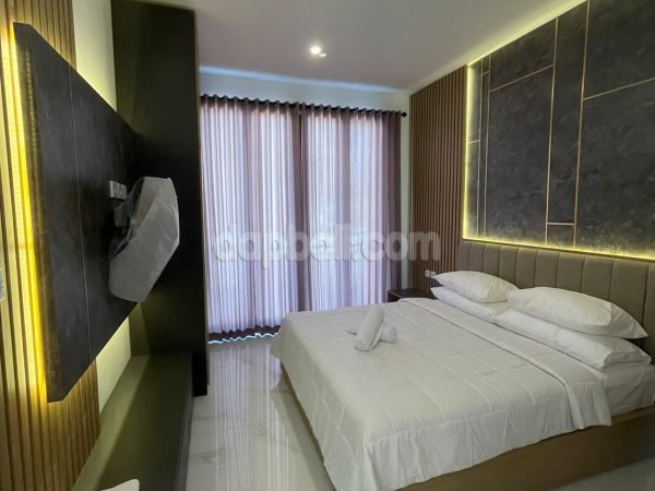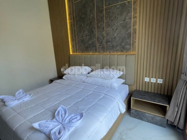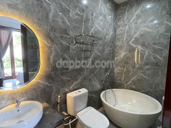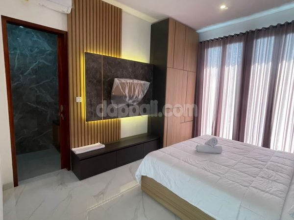 • 4 bedrooms ensuite – with one main bathroom equipped with bathtub and additional one bathroom for public use. The main bedroom on the first floor is direct access to the swimming pool while the rooms on the second floor has balcony overlooking to the swimming pool and the picturesque surrounding area. All rooms are equipped with air conditioner, spring bed, wardrobe, and modern toiletries (sitting toilet, rain shower, wasteful)