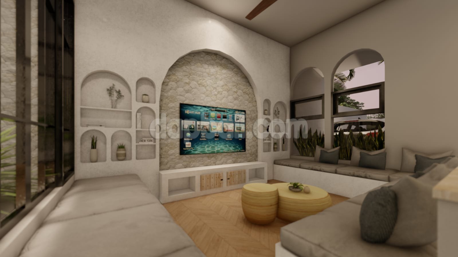 • Sunken lounge/Living room is very nice equipped with sofa, tv, and nice decorations