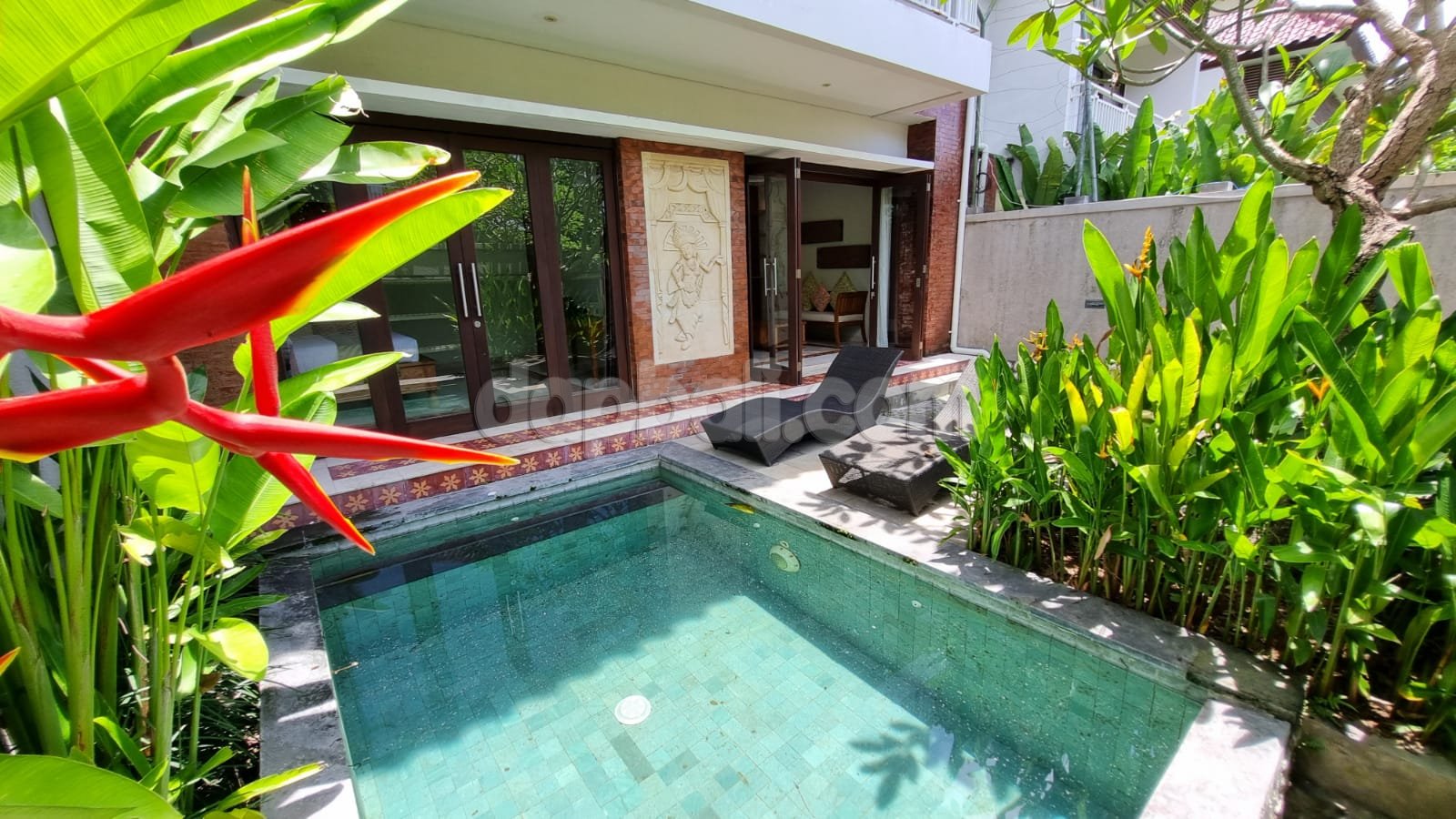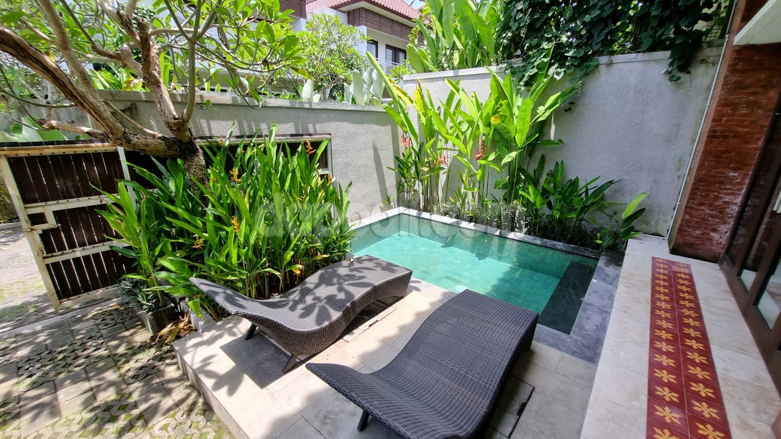The villa is two storey building with semi traditional modern minimalis concept design. It has an outdoor small swimming pool with sun loungers and surrounded by tropical garden creates a chick and cozy ambiance, a good place for relaxing while having sunbath.