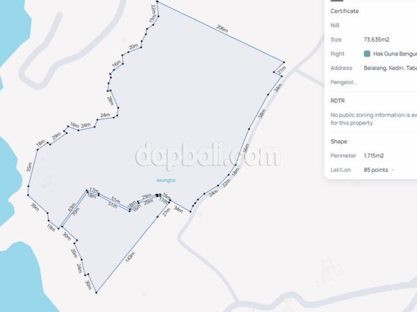 Stunning, Exclusive and Strategic location of expansive beachfront land, perfectly located in Kedungu beach area right facing onto Pekendungan beach next to Kedungu beach. Strategically situated in tourism zoning which is suitable for developing your business investment especially in tourism site by build up a luxury accommodation like a resort or hotel complete with a golf course perhaps. Expansively features over 19.4Ha which consisting of 12 certificates, away from hustle-bustle and presenting serenity and idyllic environments. Discover and develop your investment in area which commercially preserving the beauty of it’s surroundings, where visitors can experience a genuine Bali’s vibes where sustainability meets serenity. Create a sanctuary for unforgettable memories amid nature’s wonders at this beautiful neighborhood to experience the invitation to embrace the essence of getaway in the heart of tropical paradise. Perched between the ocean and rice fields offer unparalleled view of blue ocean, sunrise, rice fields and mountain from distance. The area also provides wide access road of 8 meters width. Featuring flat contour and has 426 meters beach frontage. A truly great opportunity to get a promising investment of property!
