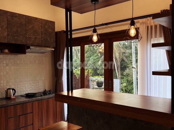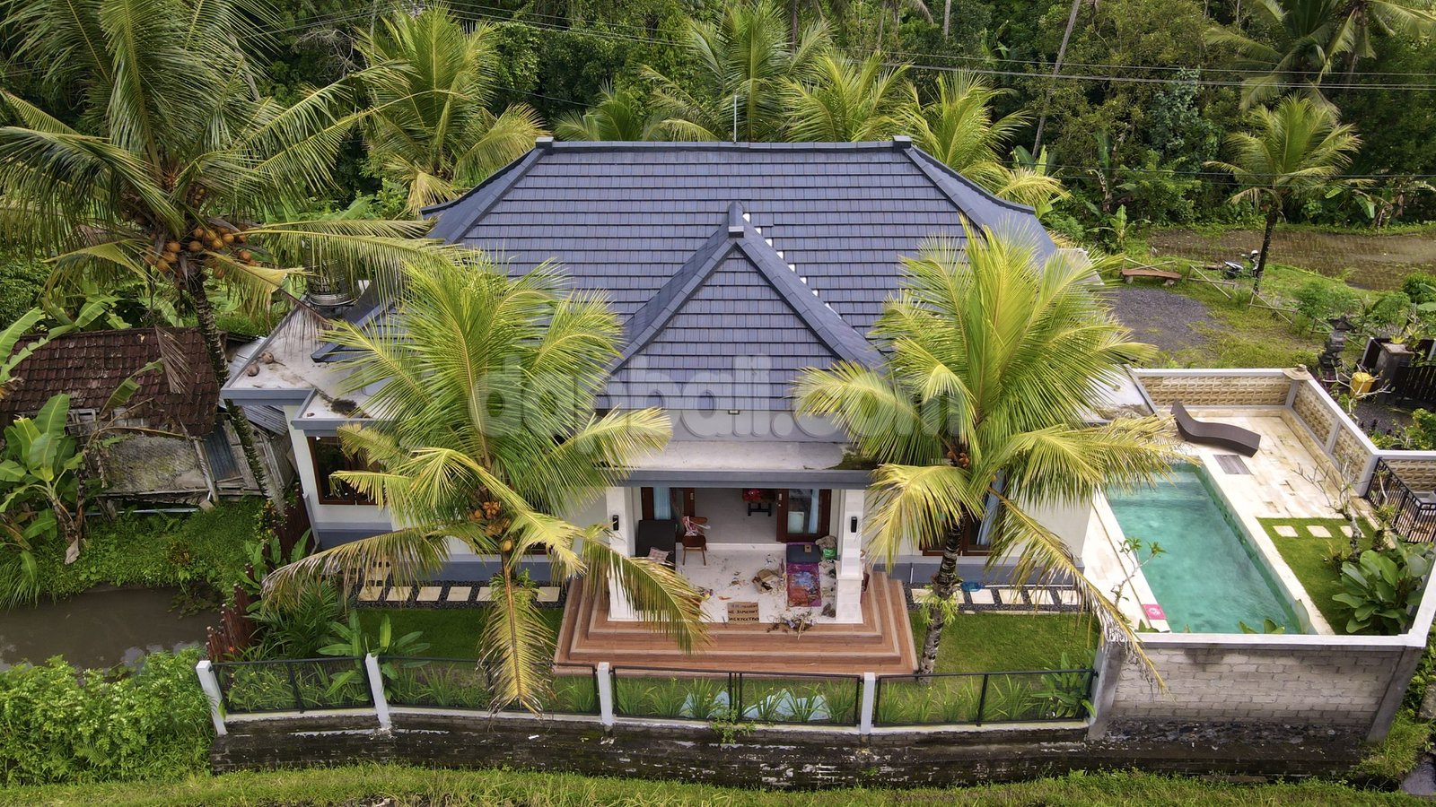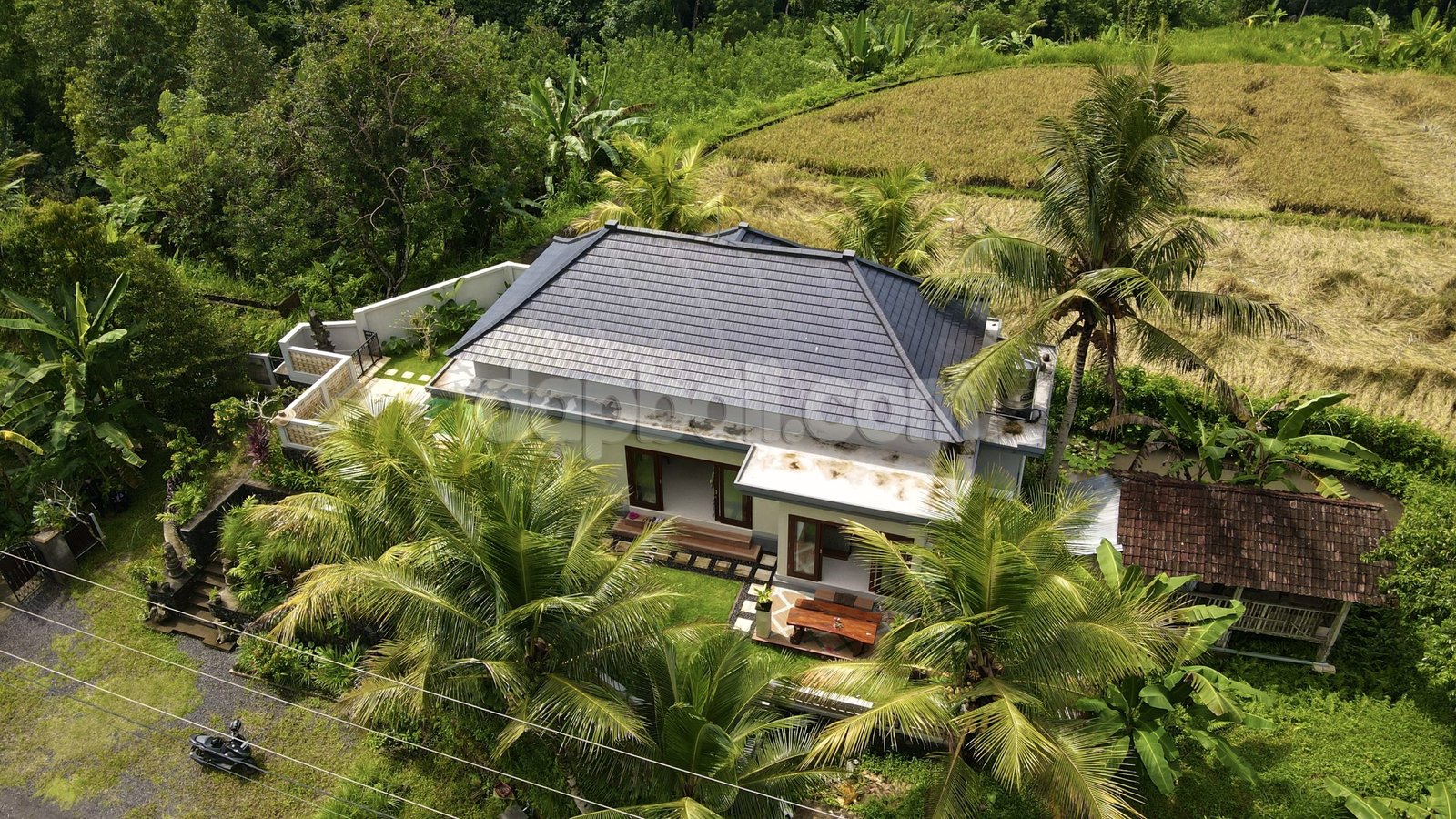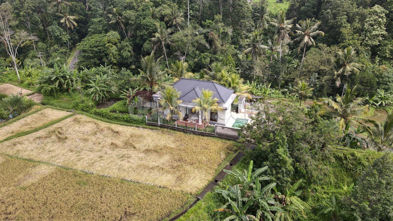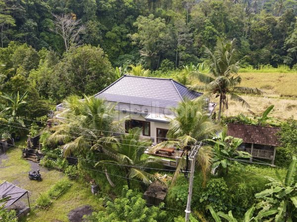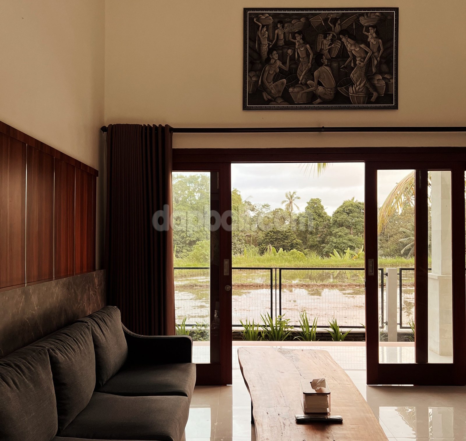 Experience tranquil living in Bali’s nature at this beautiful villa is haven sanctuary away from hustle-bustle of city life. The villa is blessed in the midst of rice fields on 1,100 sqm of land with building size is 300 sqm. Moreover, the villa is equipped with 7700kwh of electricity, ensures uninterrupted power supply for all your needs. As you step into the villa, the scale and grandeur of this stunning property will immediately captivate you. The open layout and thoughtful design are a testament to the careful consideration of every detail. Natural and earthy materials create a tranquil and grounding atmosphere. Designed for comfort, the villa features two bedrooms that comfortably sleep 4 people which fit for a small family with total privacy. Each room is beautifully appointed with two modern bathrooms come with water heaters, providing a touch of convenience that is suited to the cool weather of Ubud.