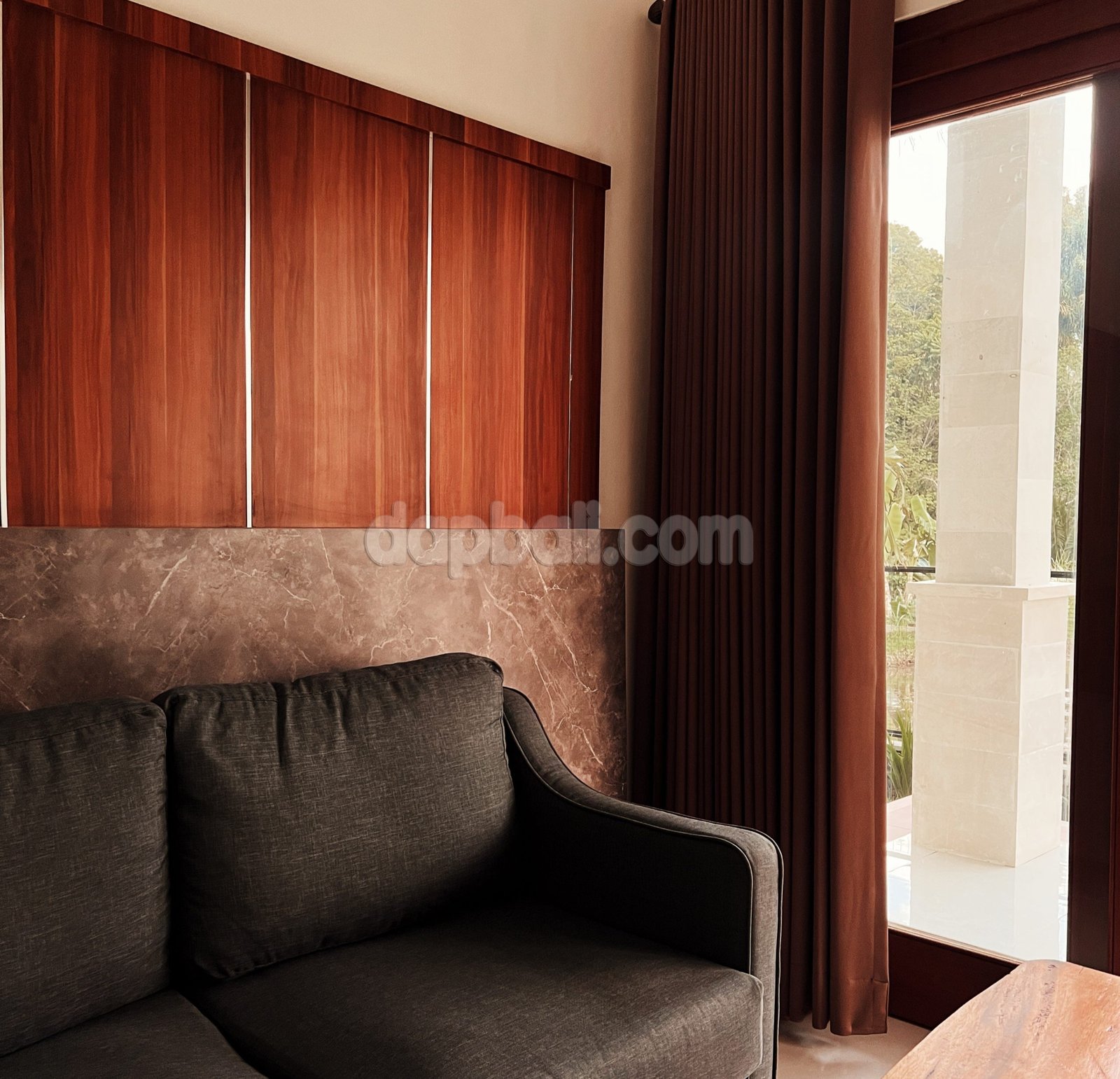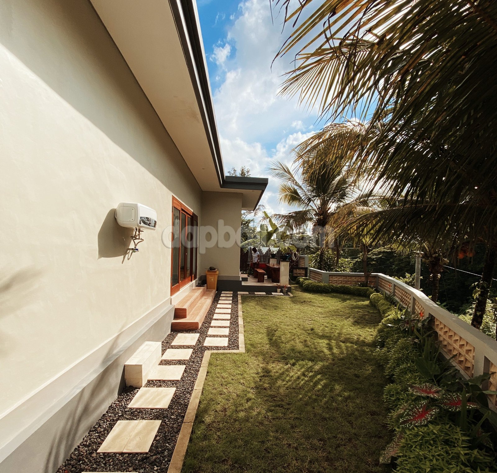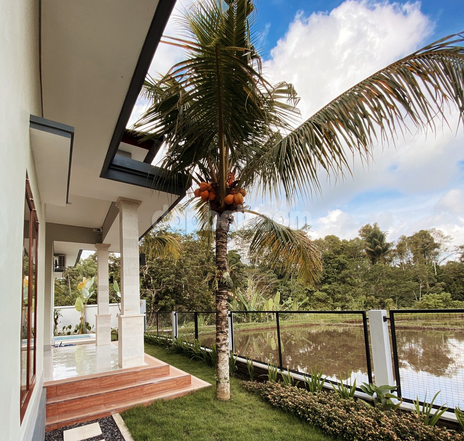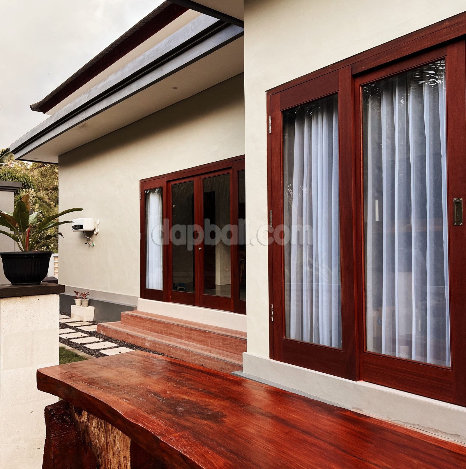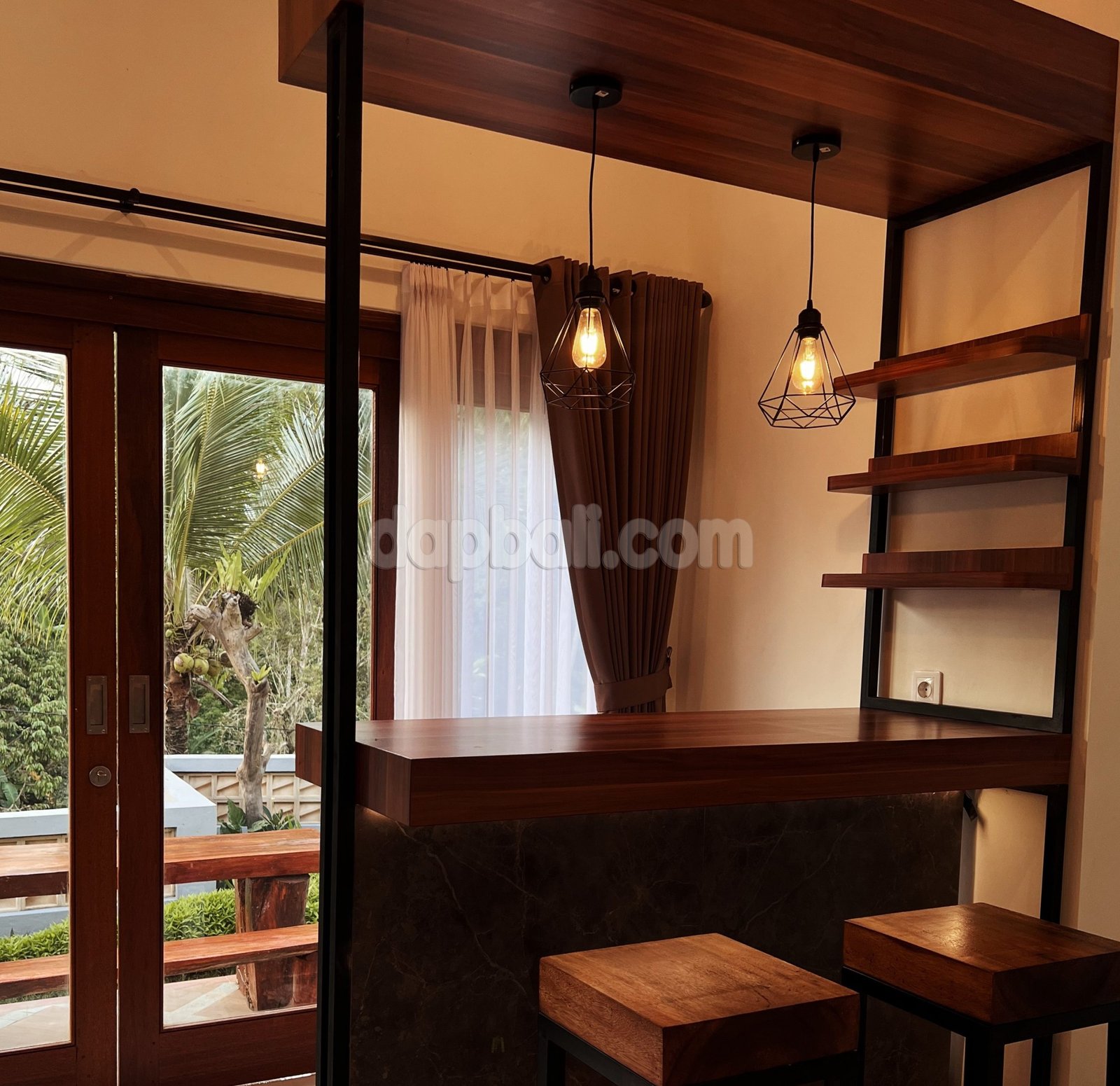 The Living room features a 55-inch smart TV with complete access to WiFi and Netflix channel, as well an elegant comfy sofa and strong wood table, beautifully overlooks onto the rice fields and lush greenery, while the fully equipped kitchen is complete with kitchen set, cook top, water dispenser, electric kettle, wasteful. It is presenting the perfect setting for home-cooked meals and intimate gatherings. Furthermore, the stunning outdoor private pool is waiting for you to get a refreshing dip. It is surrounded by mini tropical garden and sunlongers, a perfect spot to relax and unwind while getting tanned with the tropical breeze. Completed with spacious tropical garden which well-maintained and boasts the serene natural tropical ambience. This is a home where you can enjoy a little piece of paradise.