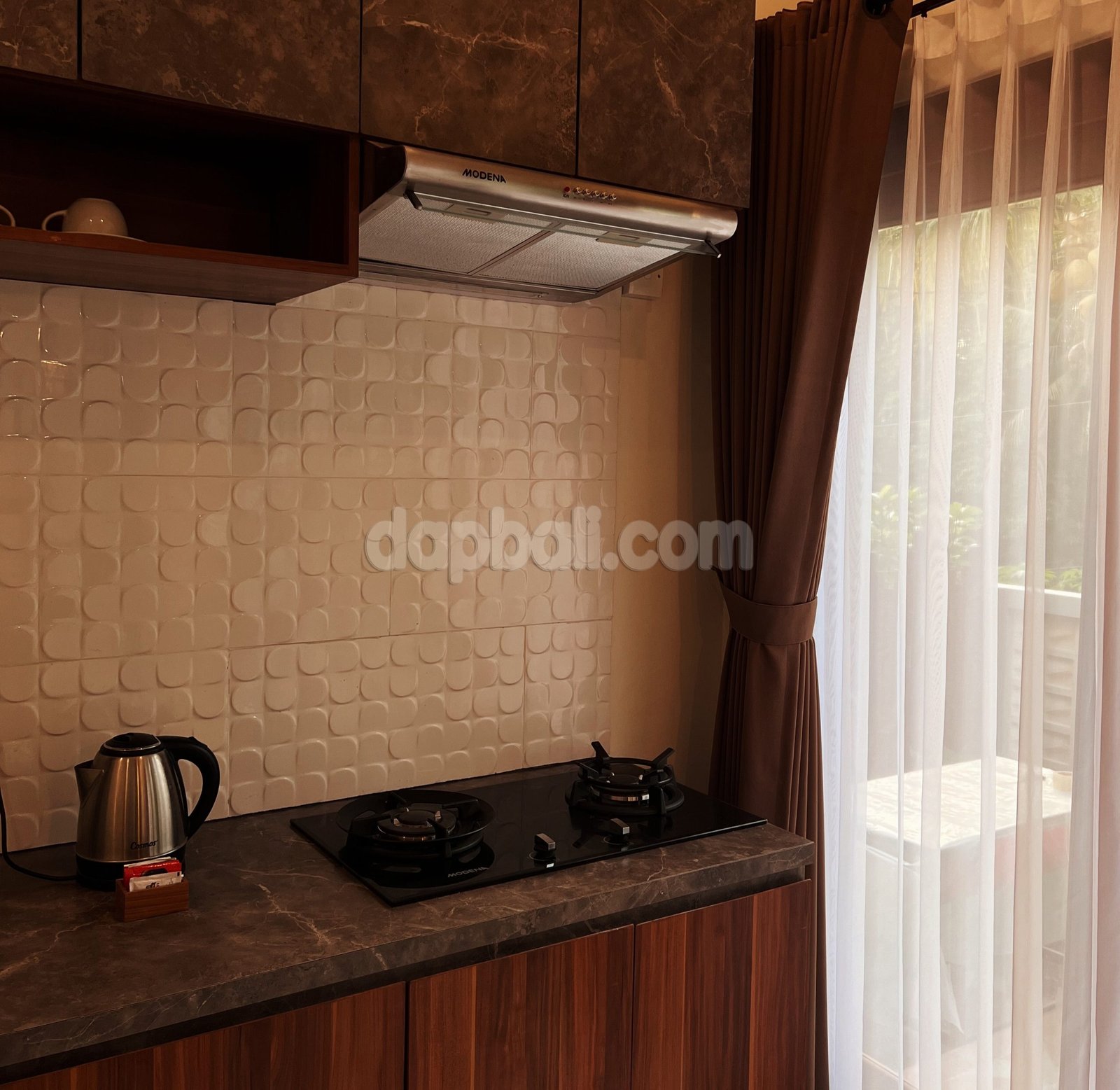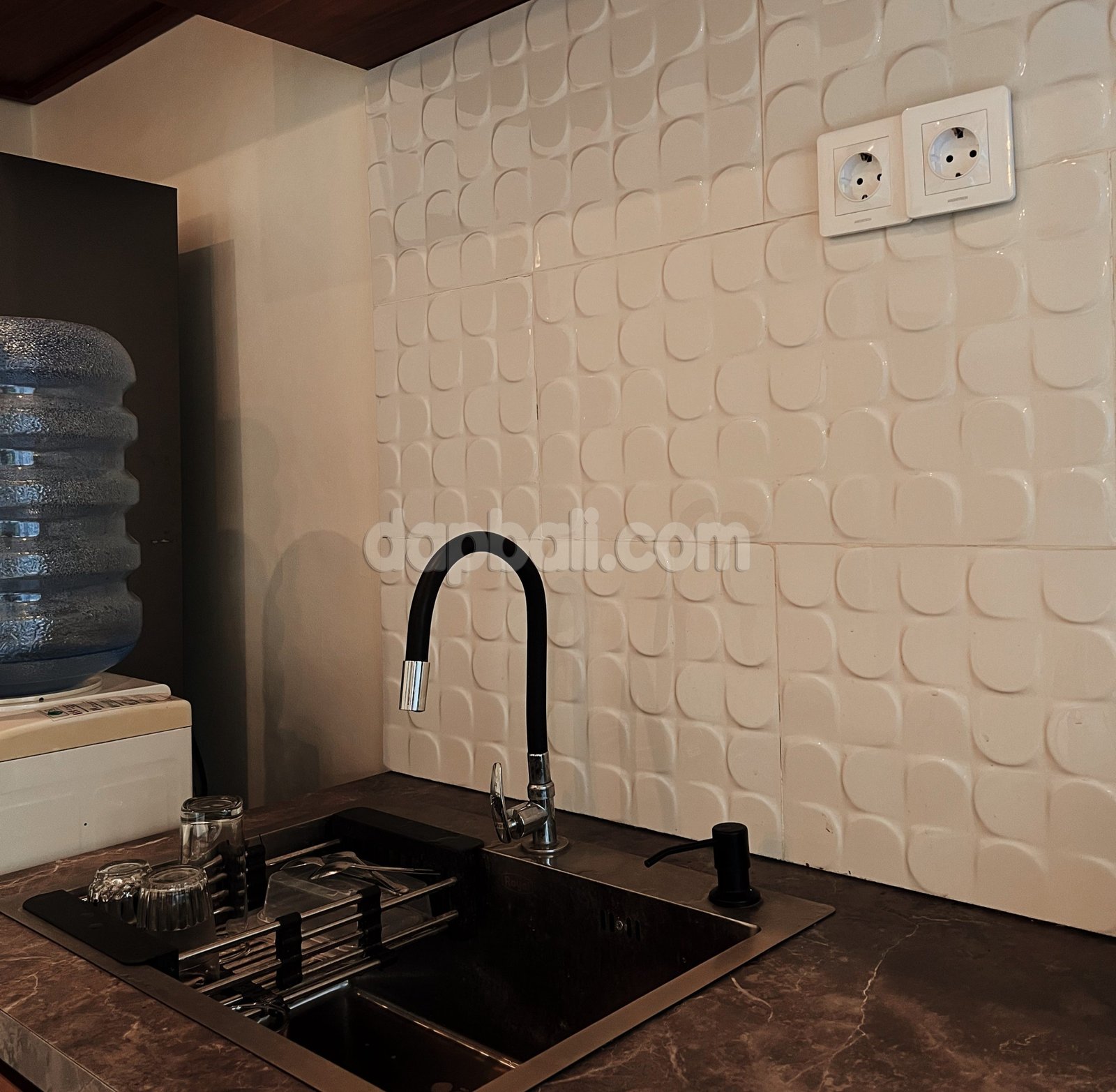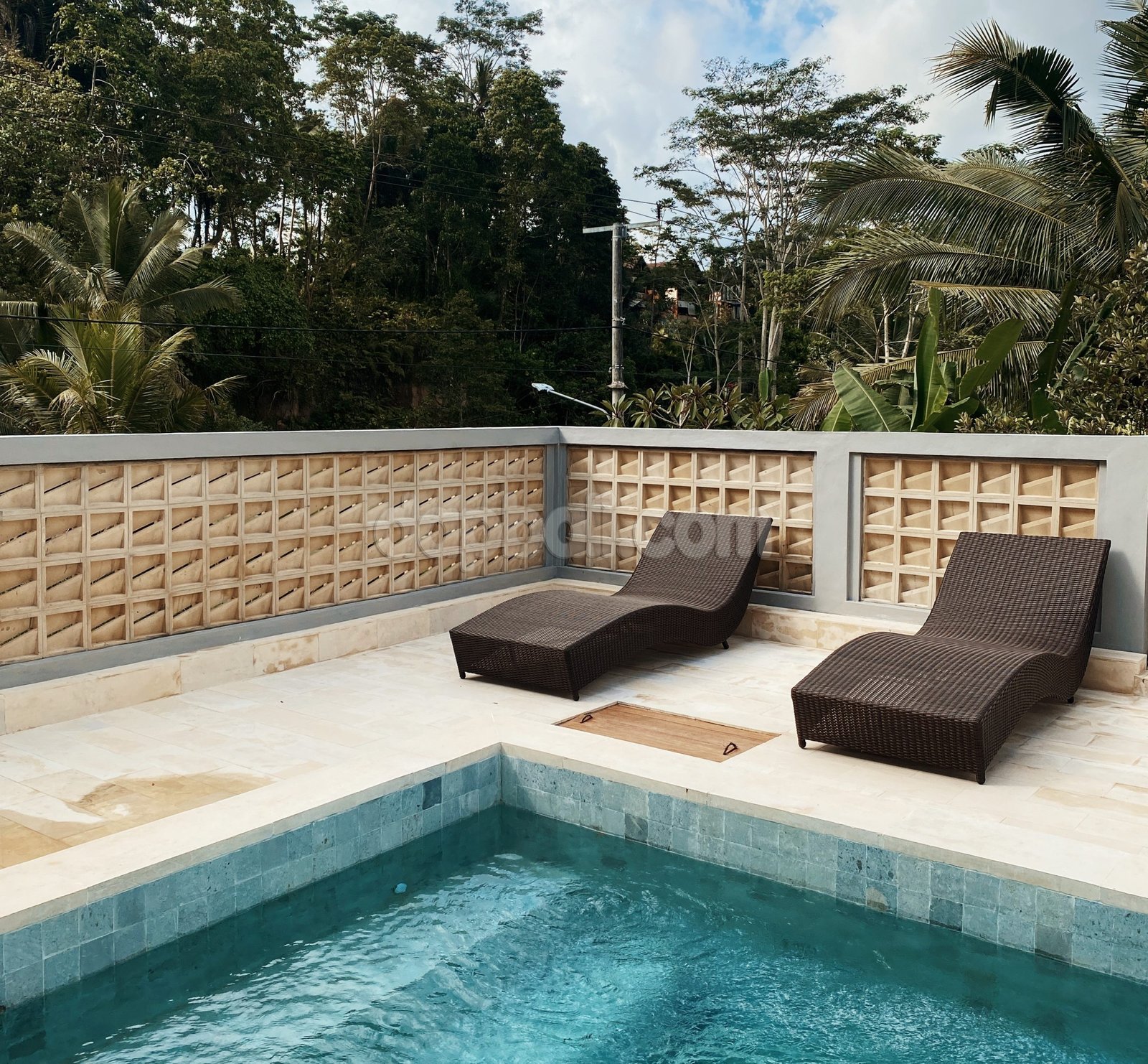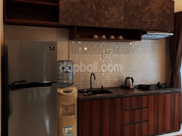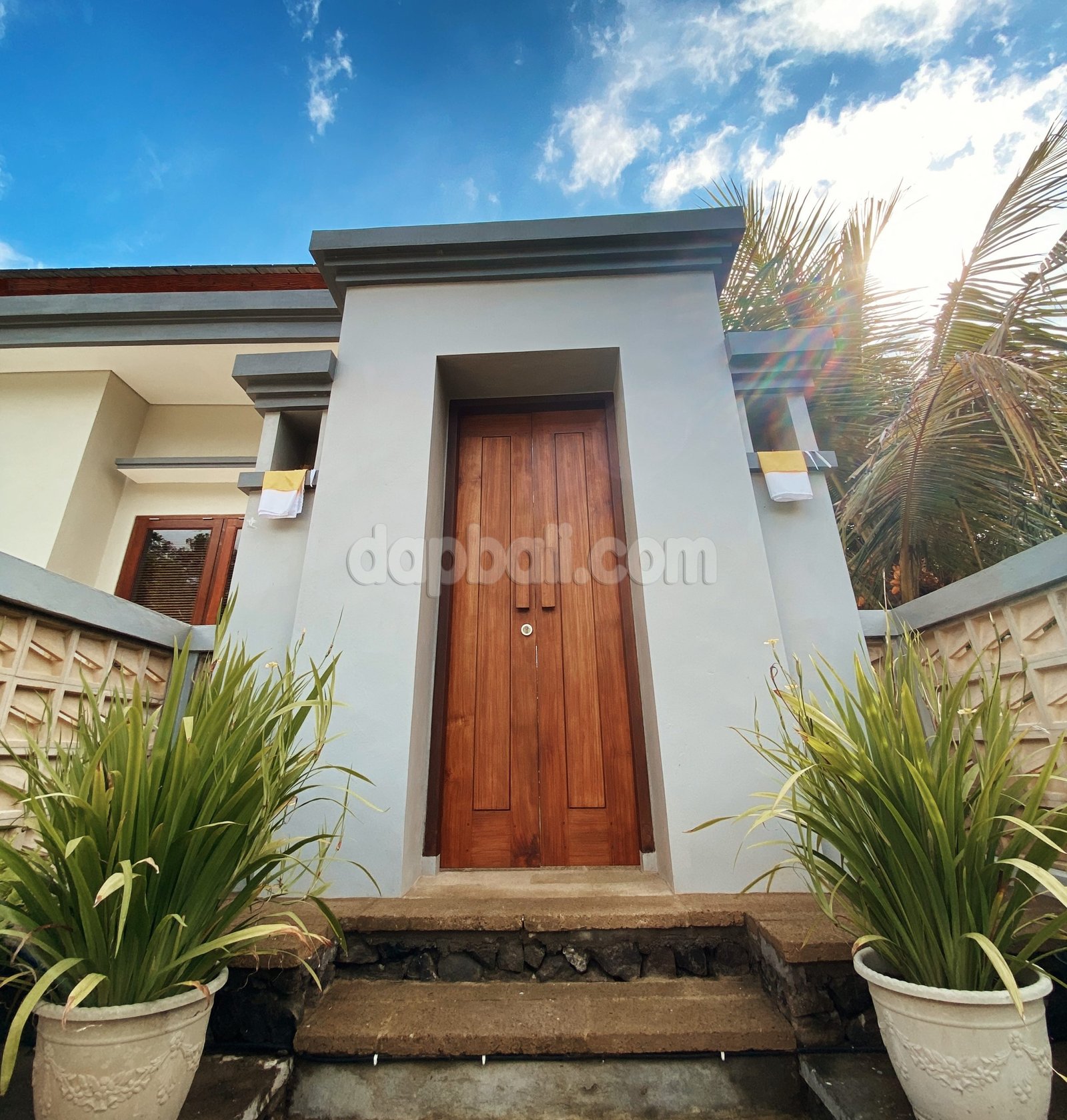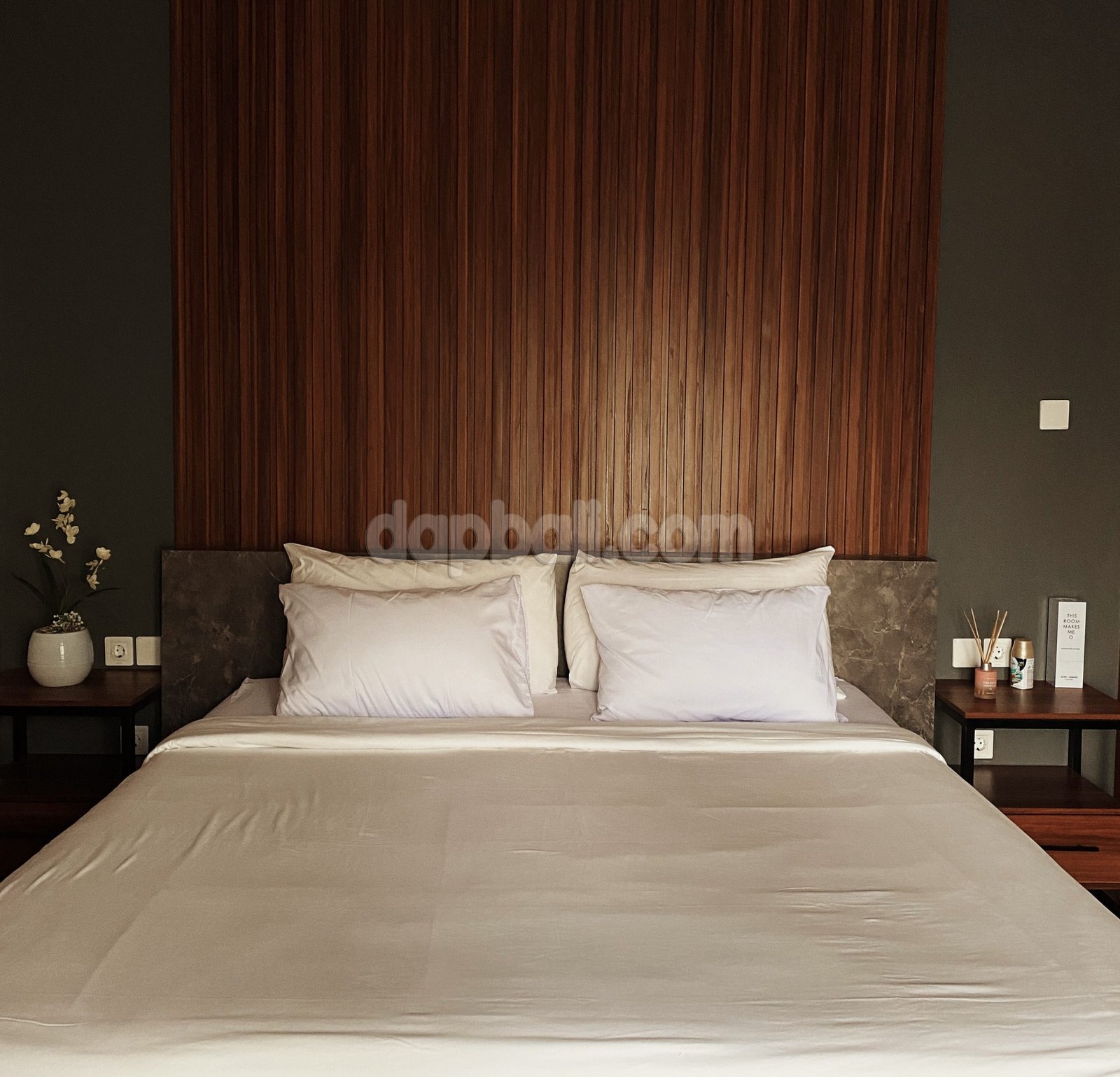 The Living room features a 55-inch smart TV with complete access to WiFi and Netflix channel, as well an elegant comfy sofa and strong wood table, beautifully overlooks onto the rice fields and lush greenery, while the fully equipped kitchen is complete with kitchen set, cook top, water dispenser, electric kettle, wasteful. It is presenting the perfect setting for home-cooked meals and intimate gatherings. Furthermore, the stunning outdoor private pool is waiting for you to get a refreshing dip. It is surrounded by mini tropical garden and sunlongers, a perfect spot to relax and unwind while getting tanned with the tropical breeze. Completed with spacious tropical garden which well-maintained and boasts the serene natural tropical ambience. This is a home where you can enjoy a little piece of paradise.