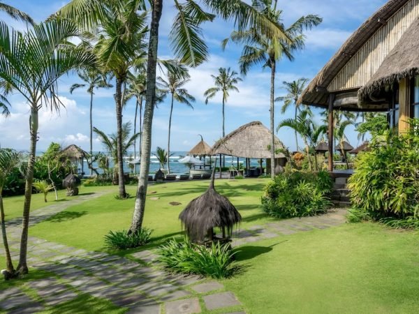 An amazing beachfront villa set over sprawling tropical gardens and directly facing onto the breathtaking Indian Ocean, nestled in a tranquil and idyllic Seseh village of Bali. An unique architecture of luxury villa is a perfect sanctuary for those wishing to be immersed in luxury, comfort and relaxation, offers balanced experience of spiritual nature and festivity. The villa boasts traditional alang-alang roofs that feature uniquely a capsized boat and the decor is a bohemian mix of coconut husks, recycled wood, bamboo and rattan. The villa also features a beautiful freeform pool overlooking the beach with Japanese grass and Coconut trees surround boasting the tropics ambience. This exquisitely designed Villa located in the amazing idyllic seaside village of Cemagi beach is nestled between lush green picturesque rice field views and the Indian Ocean. It is only a few steps to the secluded Mengening – Cemagi beach and is a perfect place to enjoy the views of beautiful sunsets over the Indian Ocean. Consisting of 7 separate building of bedrooms, each is named and decorated after one of the seven Chakras, so you know you are in for a soul-soothing Bali getaway. Standing on 4,500 sqm of land with total building size is 1,600 sqm as a two-storey building. Featuring 7 bedrooms ensuite bathrooms, all with unique design and furnished traditionally eco-friendly furnishings and materials, a nest of serenity and comfort. Ensuite semi open-plan bathroom with all natural surroundings and materials, stone bathtub, stone washbasin, etc and surrounded by tropical garden. Large swimming pools at the first line towards the beach with unparalleled breathtaking views of the beach and Indian Ocean, shrouded by the blue skies and wrapped with natural surroundings of coconut trees, Japanese grass, and tropical breezes makes it a perfect spot to spend time and laid-back immersing into serenity and nature. The Living room is very nice and cozy, wrapped with rattan sofa chairs in lavender nuance. And the Dining room ensuite kitchen with semi open-closed style, equipped with unique rattan dining table set, overlooking onto the beautiful garden. Moreover, the villa also provides storage, spa, gym, entertainment rooms, mini bar and restaurant, wedding venue, etc. The property is within the vicinity of Cemagi – a rural, seaside village not too far away from Batu Mejan beach or more fondly called Echo beach at Canggu, is one of Bali’s hottest surfing destinations, and also known for for its picturesque seascapes, fresh and delicious seafood restaurant as well as for its magnificent sunsets. Along its sandy strip are sunset cafes and seafood restaurants such as Sticky Fingers, Osteria Italiana, Sate Bali, Dian cafe, and Echo Beach House – all offering barbecues and boat-shaped buffets. Another must see attractions in the area is the centuries-old, sea Temple Tanah Lot where you can also catch the magical sunset as well ad traditional dance performances. After all that swimming, surfing, and sightseeing, try your hand at a game of golf. See if you are at part with the Nirwana Golf Club and its 18-hole course that traverses rice paddies and cliffs by the sea. A truly fantastic features of property, the architecture, location and surrounding area are amazing. All premium and Commercial, Beautiful and Authentic. So, make sure you own it.