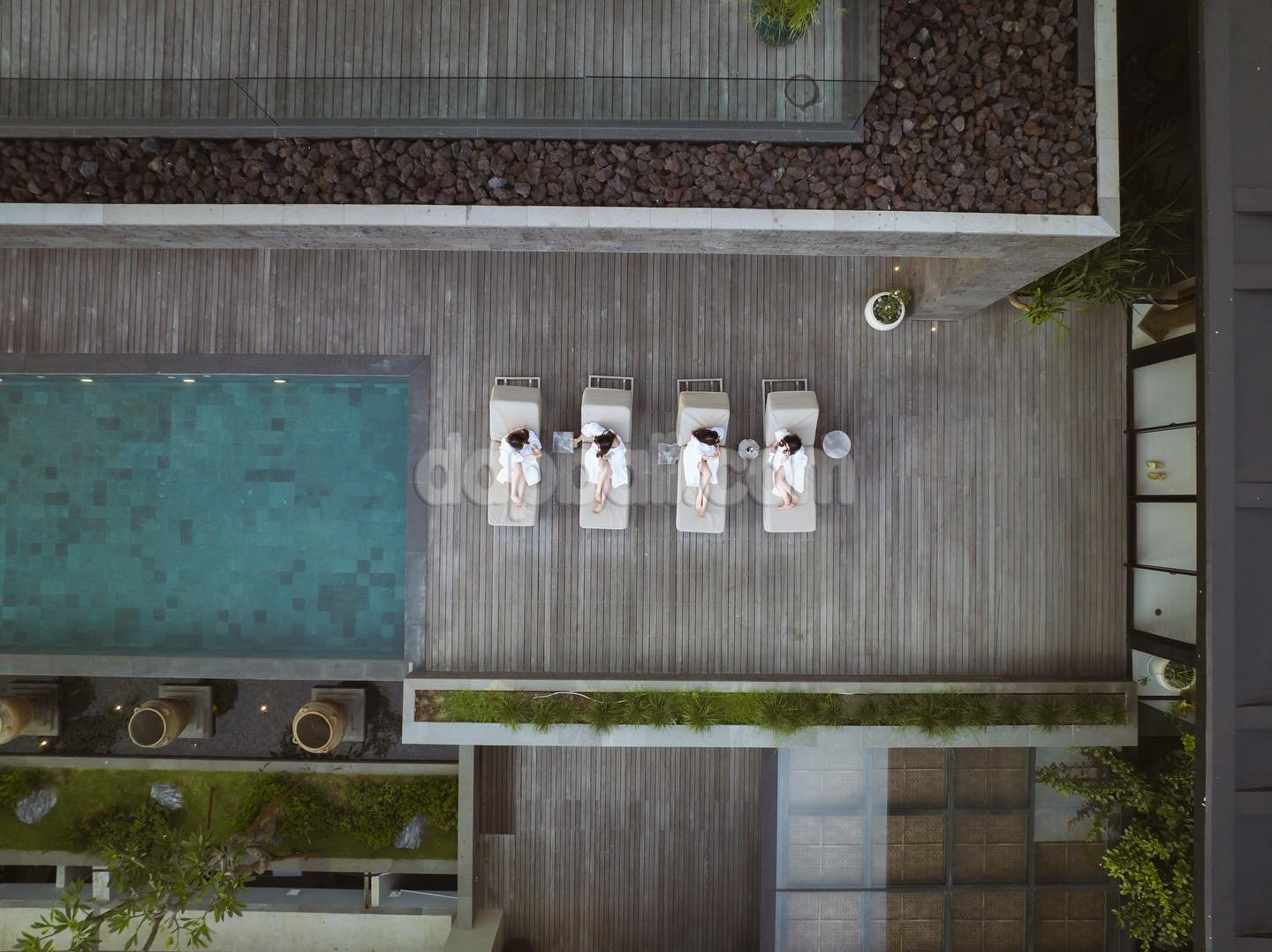 • SWIMMING POOL: There are three outdoor pools, including a children’s pool. The main swimming pool is surrounded with large wooden sun deck offers breathtaking views of the ocean which making it an ideal spot to enjoy the south-facing villa’s spectacular sunsets and infinity pool is located on upper floor