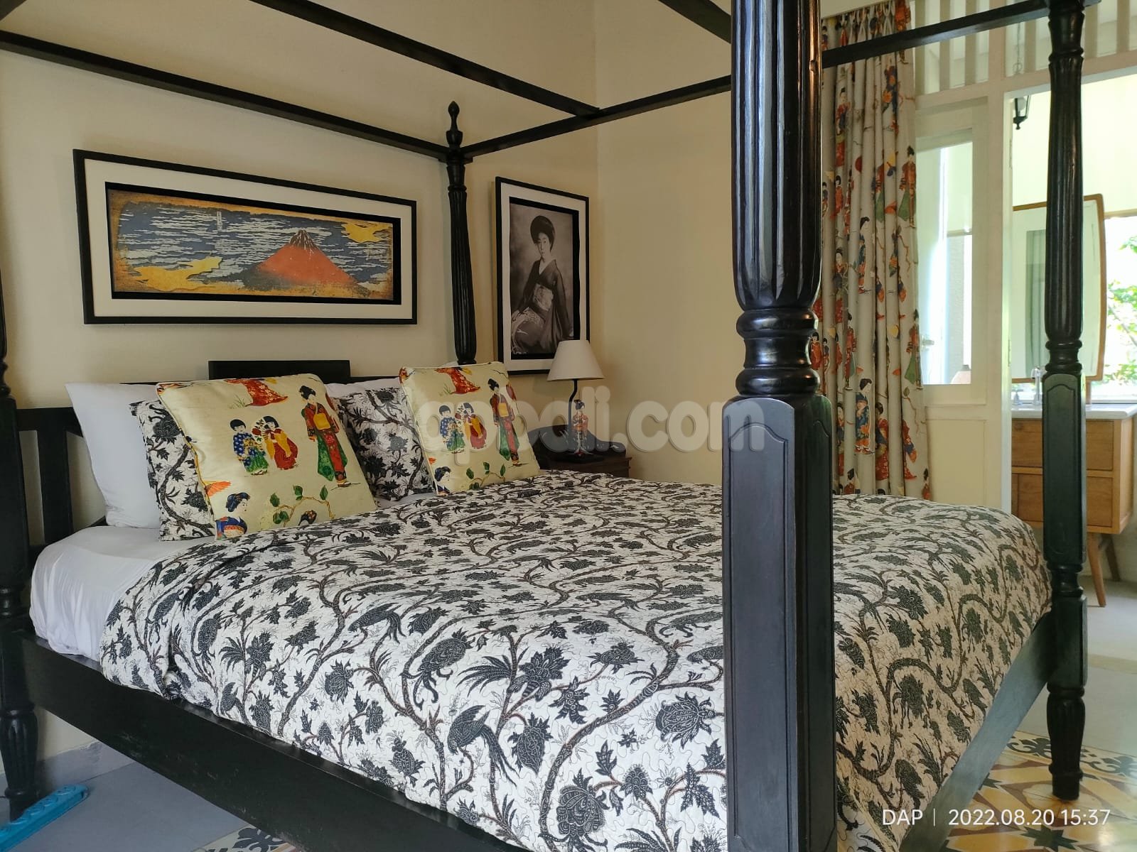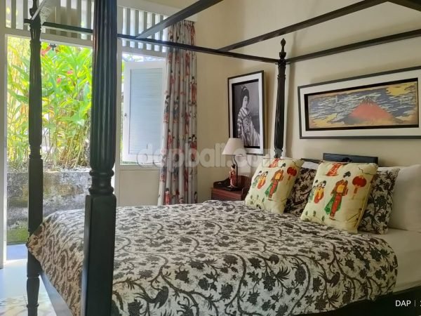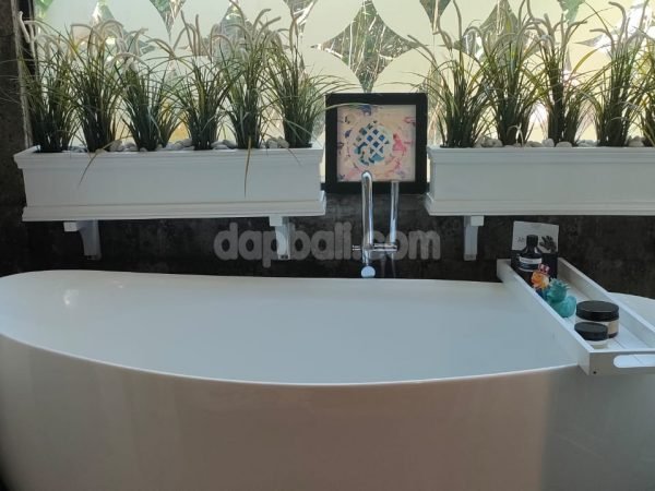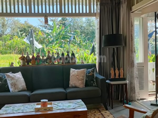 Set on 600 square meter freehold land with absolute river, jungle and rice field view, this gorgoes villa has 2 separate building with mixture of Holand-Chinese style and sync to Google assistant. Featuring two stylish-comfortable bedroom at the main building, open living room and two dinning area along with barbeque spot and equipment. The villa also has a stylish kitchen with modern equipment and zinc.