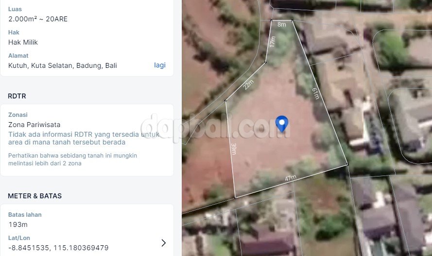 Land Dijual BadungKuta SelatanPandawa