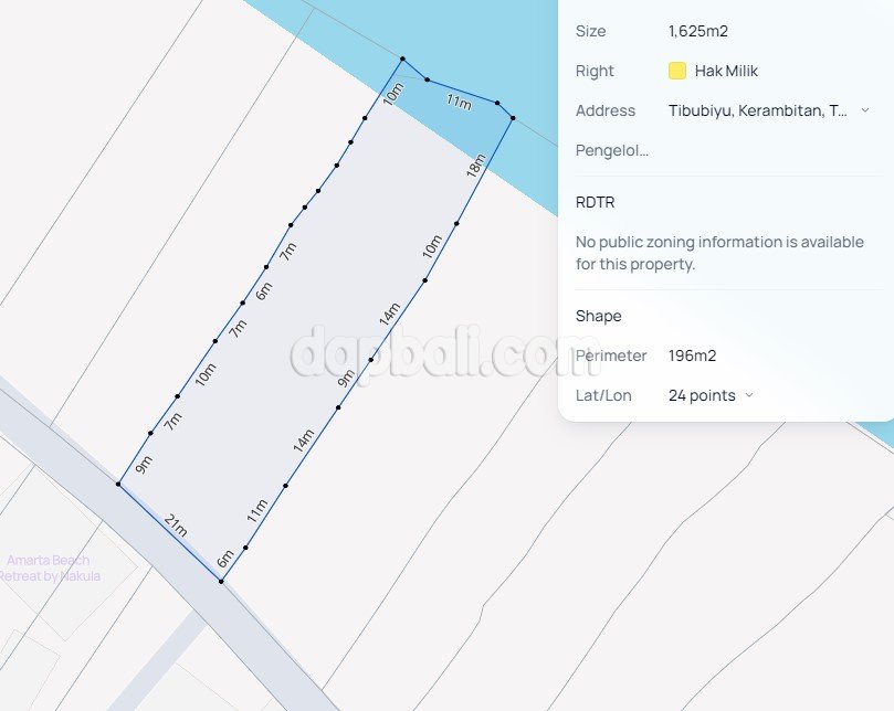 Perfectly flanked by pristine river, private and commercial villas and sparkling black sand beach, this prime beach-riverside land is perfect to build a luxury villa for private enjoyment as second home away from home or business purposes or even for developing investment as long term assets. Located just a stone throw to the beach in the area that is presenting unparalleled natural beauty and offers the utmost serene tropical atmosphere in the south western of the paradise island – Bali at Tibubiu village of Tabanan Regency. Strategically right neighboring the exclusive accommodation is “Amarta Beach Retreat by Nakula”, it makes this land more valueable that emphasize its exclusivity. The views offer also breathtakingly undoubted what Bali’s known for such as verdant rice fields, stunning sunsets, sparkling black sand beach, majestic mountain from distance, etc. Features over 1,625 sqm of land featuring flat contour with nearly rectangular dimension, and ideally situated in tourism zoning which ready to build. Moreover, the area also provides wide access road by 5 meters width asphalt road. Such a fantastic image of property and it’s rare opportunity, so make sure you get it!