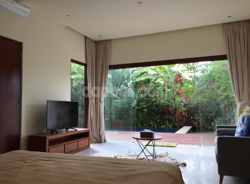 Mostly the rooms of the villa are using glass walls which is able to see the tropical view outdoors from inside.