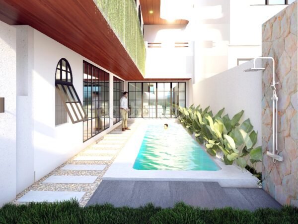 This villa is a brand new comes with luxurious modern mediterranean concept design. Attractively has a calm ambiance, suitable for a relaxing luxurious living in Bali. Strategically located nearby Trendy Canggu, Iconic famous Tanah Lot Temple, Munggu, Cemangi and Seseh. This villa will be ready to stay on soon by this year (2024), and it is perfect for a short or long term accommodation in Bali for private use or for commercial business purposes. It will be a great chance for business as the location is very espouse, closed to many popular places in Tabanan Regency – Bali, away from massive crowds and offers a serene atmosphere. Imagine two-storey storey villa nestled only 10 minutes drive away from tourist hotspots in Northern Kuta, in a region where from its balcony you can see rice fields, Balinese houses and attractions sprawling about, facilitating your far away escape from boring daily routines and hectic concrete structures that you are familiar with, basking yourself in nature’s glory. Boast of two units two-storey of 3 bedroom ensuite each standing on land 185 sqm with building size of 200 sqm and 165 sqm land with building size 190 sqm. The property provides soothing personal space for each individual staying and living in its embrace. Moreover, each villa is furnished with high taste selection and elegant setting, encompassing a big outdoor swimming pool where you can enlighten your mood with a little dipping and soak under the sunlight and tropical breeze.