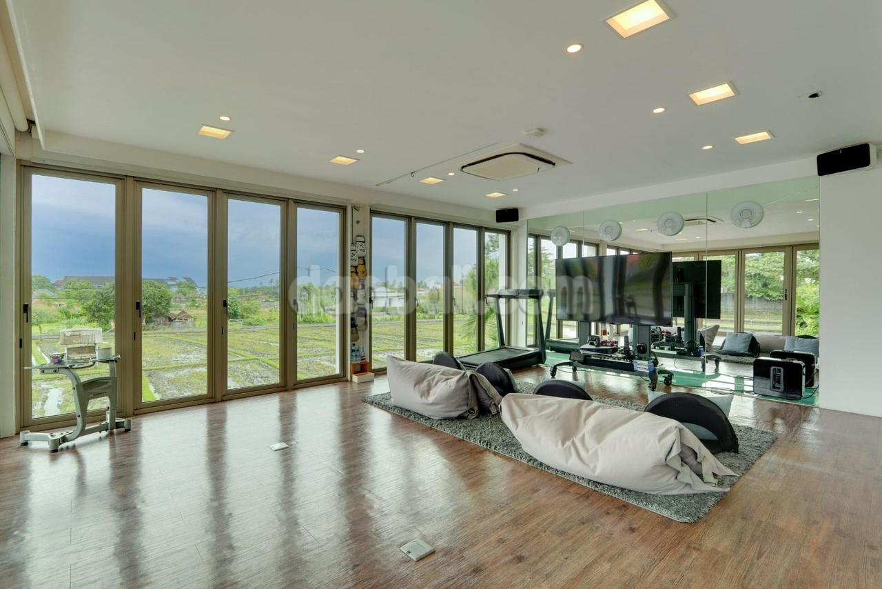 • Private home mini gym with rice fields view.