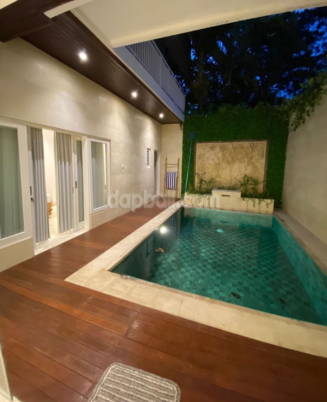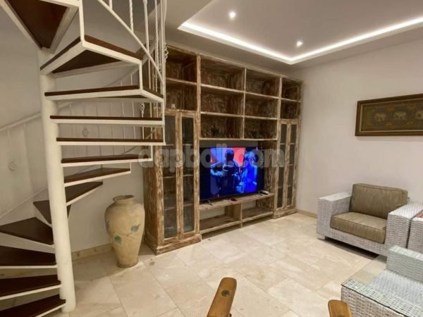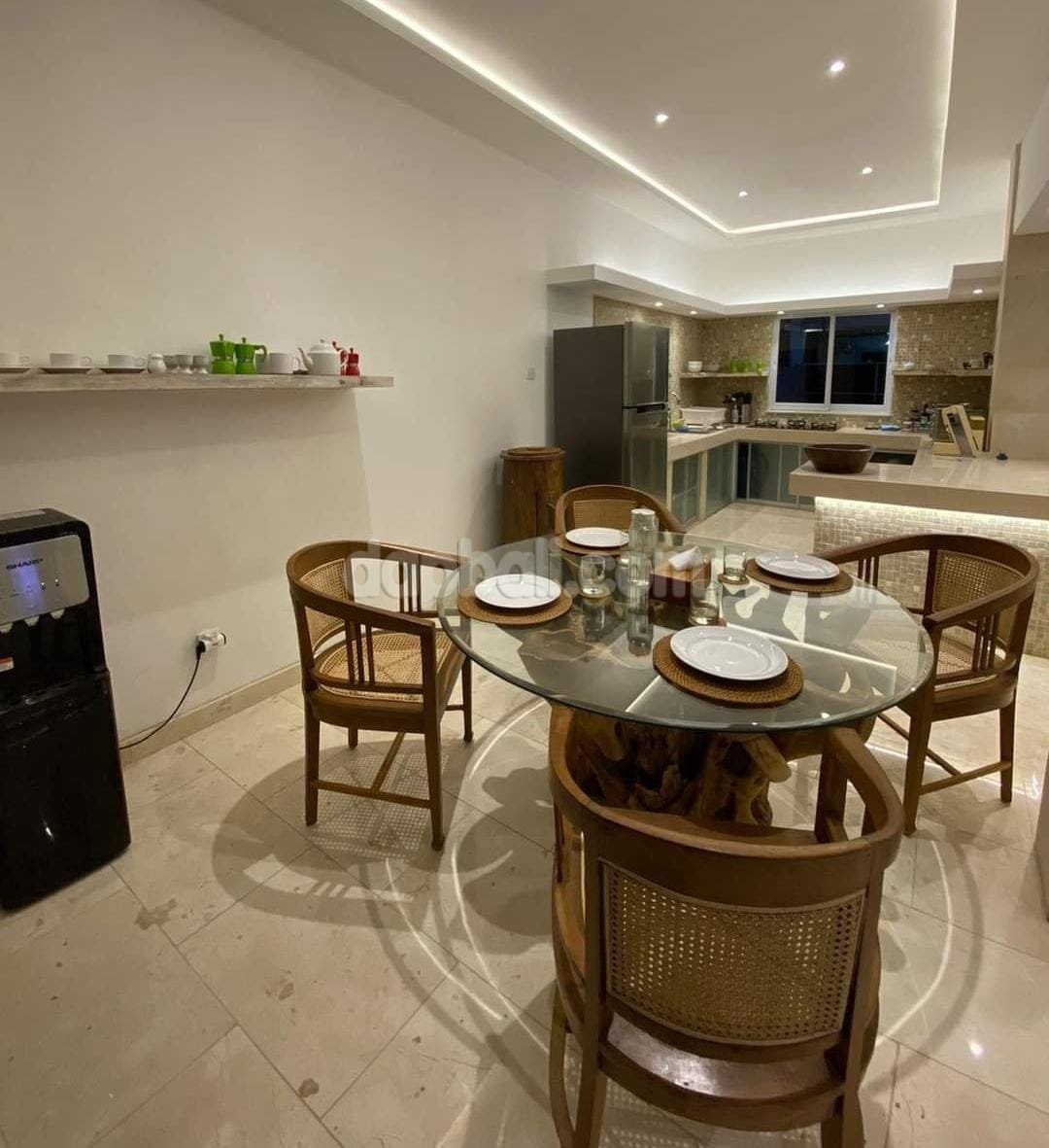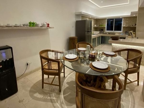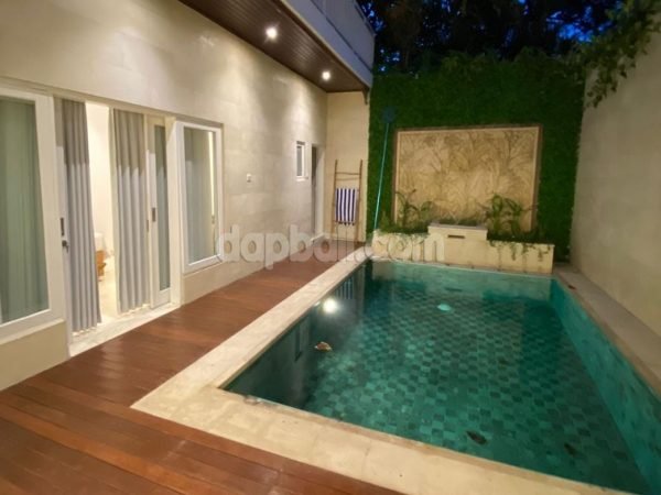 A well renovated villa with 180 m² two storeys building area is for freehold sale in Kerobokan, Bali. With 176 m² global land area, this property provided one gate system. Located in Jalan Mertanadi, the area contains various tourist accommodation and facilities. It take around several minutes away drive to the attractive tourism sites of west coast line beaches. Nevertheless, the neighborhood environment is quite calm and peacefully comfortable.